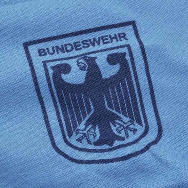 Оригинальная военная мала с короткими рукавами синего цвета, сшита для нужд немецкой армии Бундесвера. У него есть эмблема Бундесвера на груди. Изготовлен из материала с 50% полиамидом, 50% хлопка.