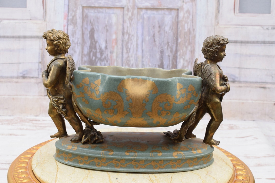Здравствуйте, сегодня хочу предложить Вам красивую жардиньерку из фарфора с бронзовой фурнитурой.