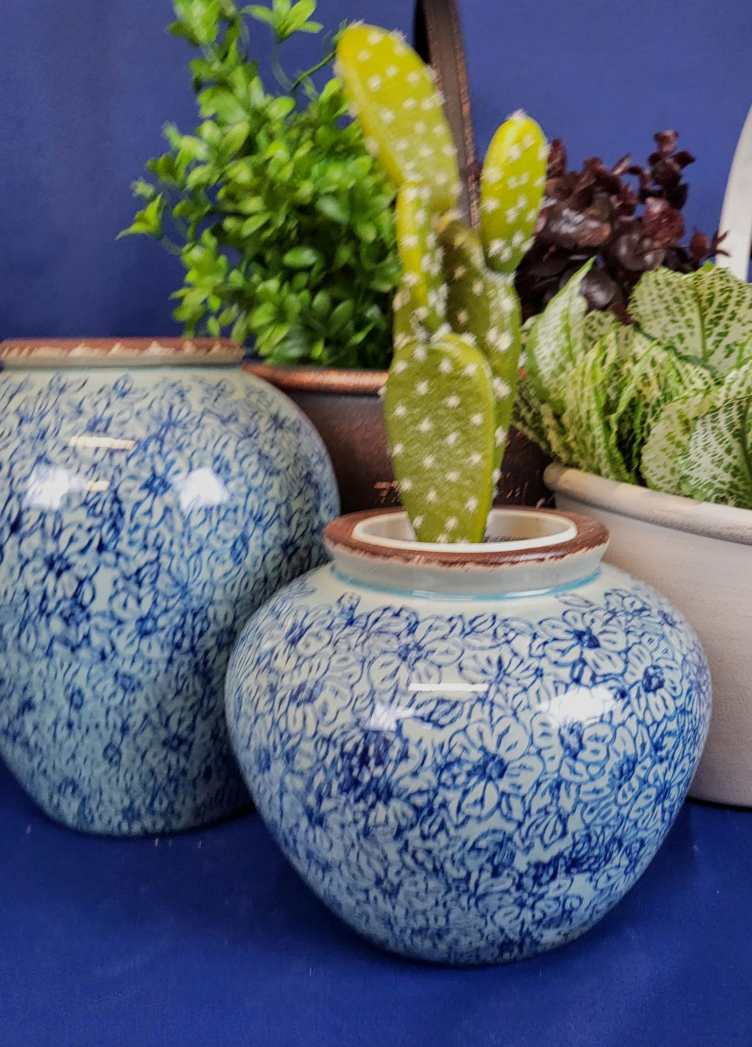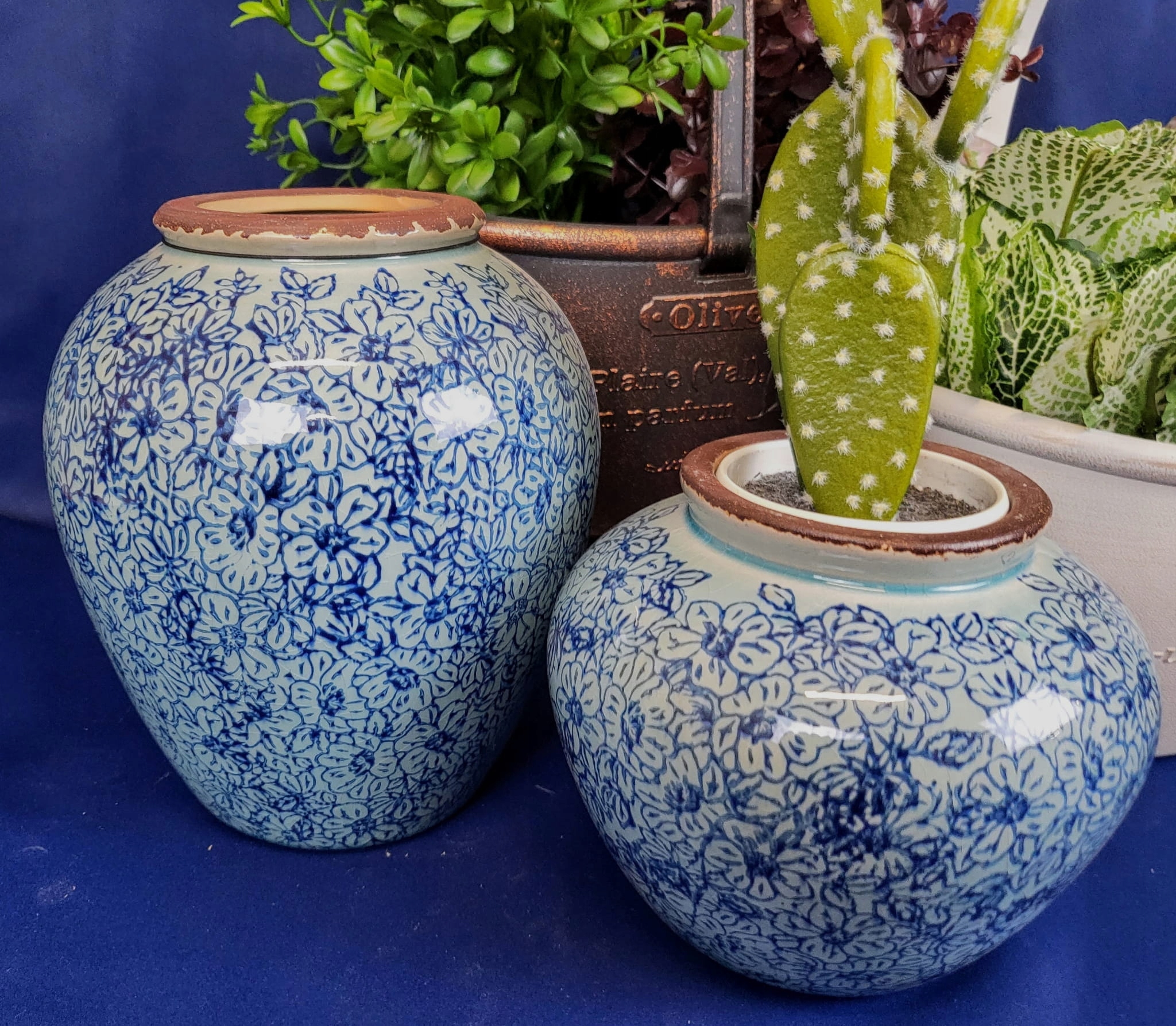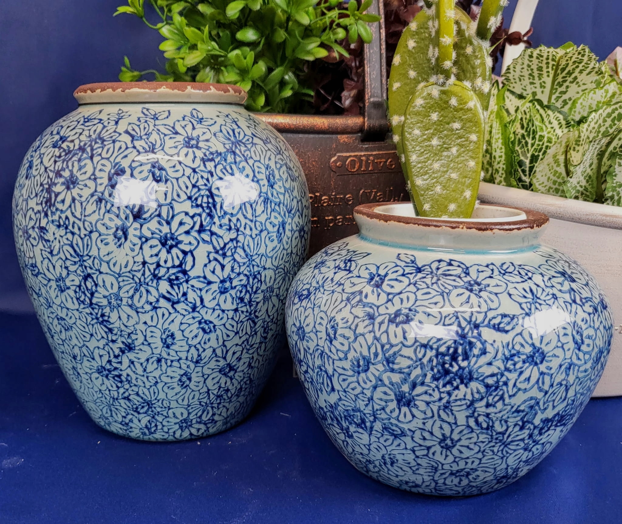 Керамическая ваза синего цвета с цветочным узором. Он прекрасно впишется в деревенский, провансальский, морской или эклектичный интерьер.