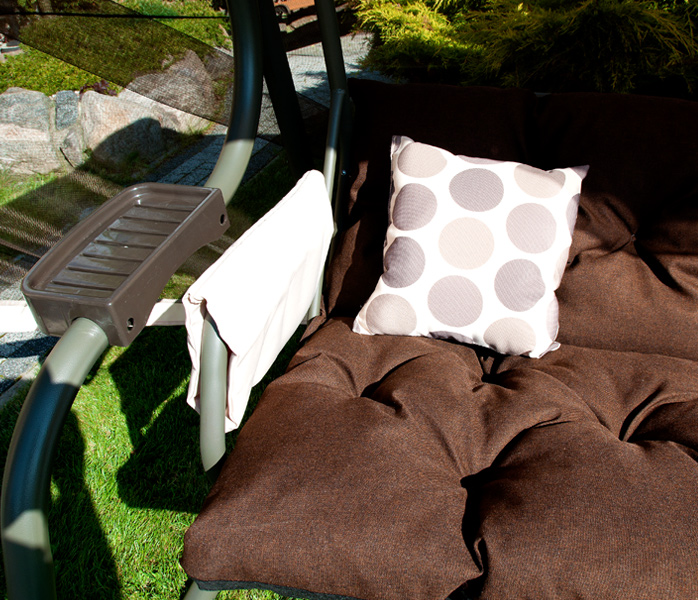 качели оснащены 2 подставками для напитков, 2 подушками размером 32х32 см и 2 практичными подлокотниками