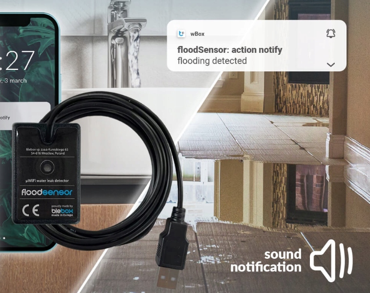 floodsensor может беспроводным образом отправлять порядок управления на до 30 других устройств Blebox через локальную сеть Wi -Fi.