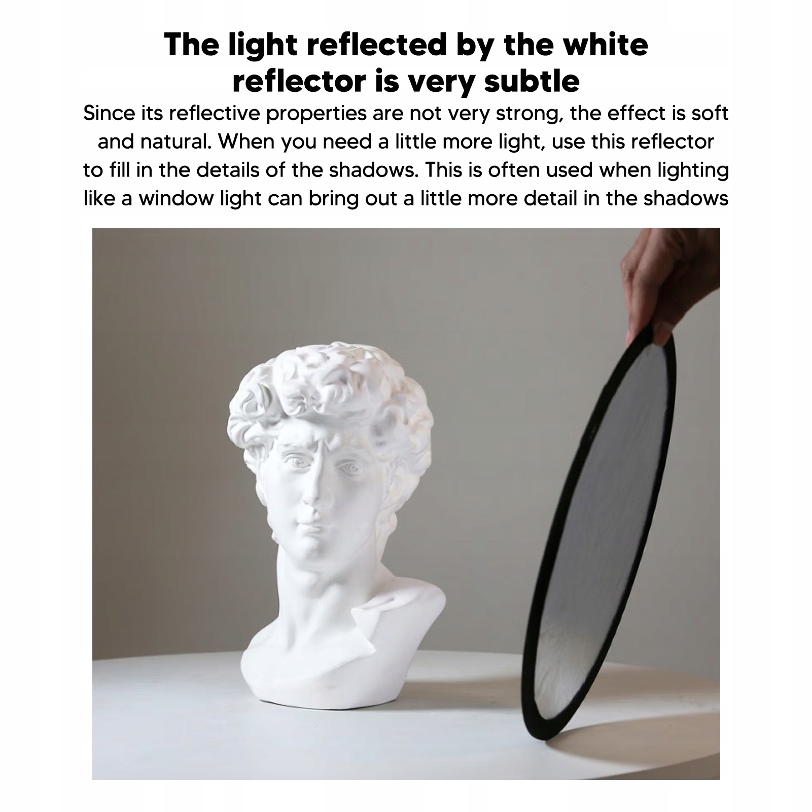 4. Белая фара: свет, отраженный белыми отражателями, очень тонкий. Поскольку его отражающие свойства не очень сильны, эффект мягкий и естественный. Когда вам нужно немного больше света, используйте этот отражатель, чтобы заполнить данные тени. Это часто используется во время освещения, так как окно -свет может извлечь немного больше деталей в тени.