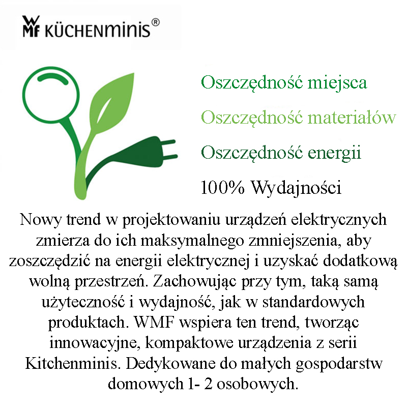 Линия WMF KitchenMinis была разработана для небольших семей из 1 или 2 человек. Эти изделия идеально вписываются в польские реалии, поскольку созданы для обустройства не очень просторных квартир и домов.