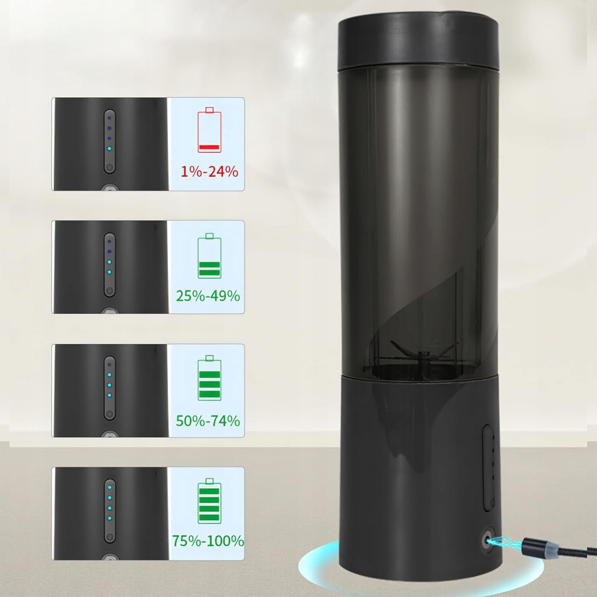 - Этот блендер индивидуального размера является съемным, а емкость блендера составляет 16 унций (450 мл) для удовлетворения ваших ежедневных потребностей в напитках. Нажмите кнопку питания, чтобы проверить уровень заряда батареи.