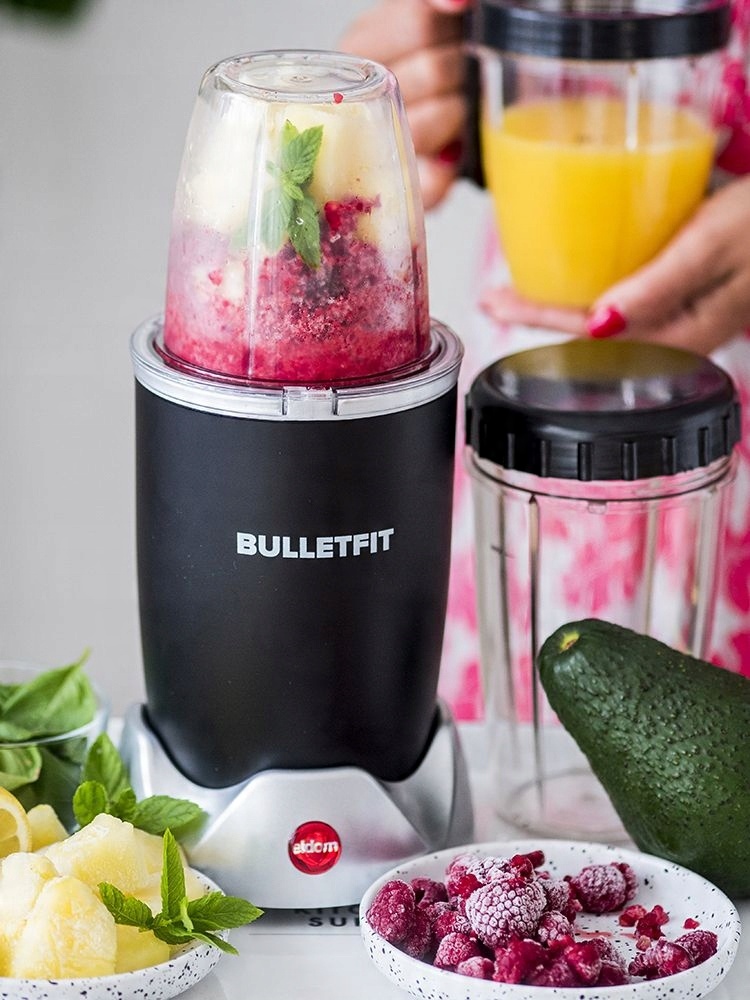 предназначен для быстрого приготовления вкусных и питательных напитков, супов и смузи и т.п. Навинчивающиеся ручки позволяют превратить входящие в комплект контейнеры в удобные чашки, а крышки облегчают хранение свежеприготовленных блюд. Наполните контейнер питательными веществами, поместите его на устройство и нажмите, чтобы начать перемешивание. Всего за несколько секунд блендер измельчит свежие и полезные овощи, фруктовые соки или коктейли