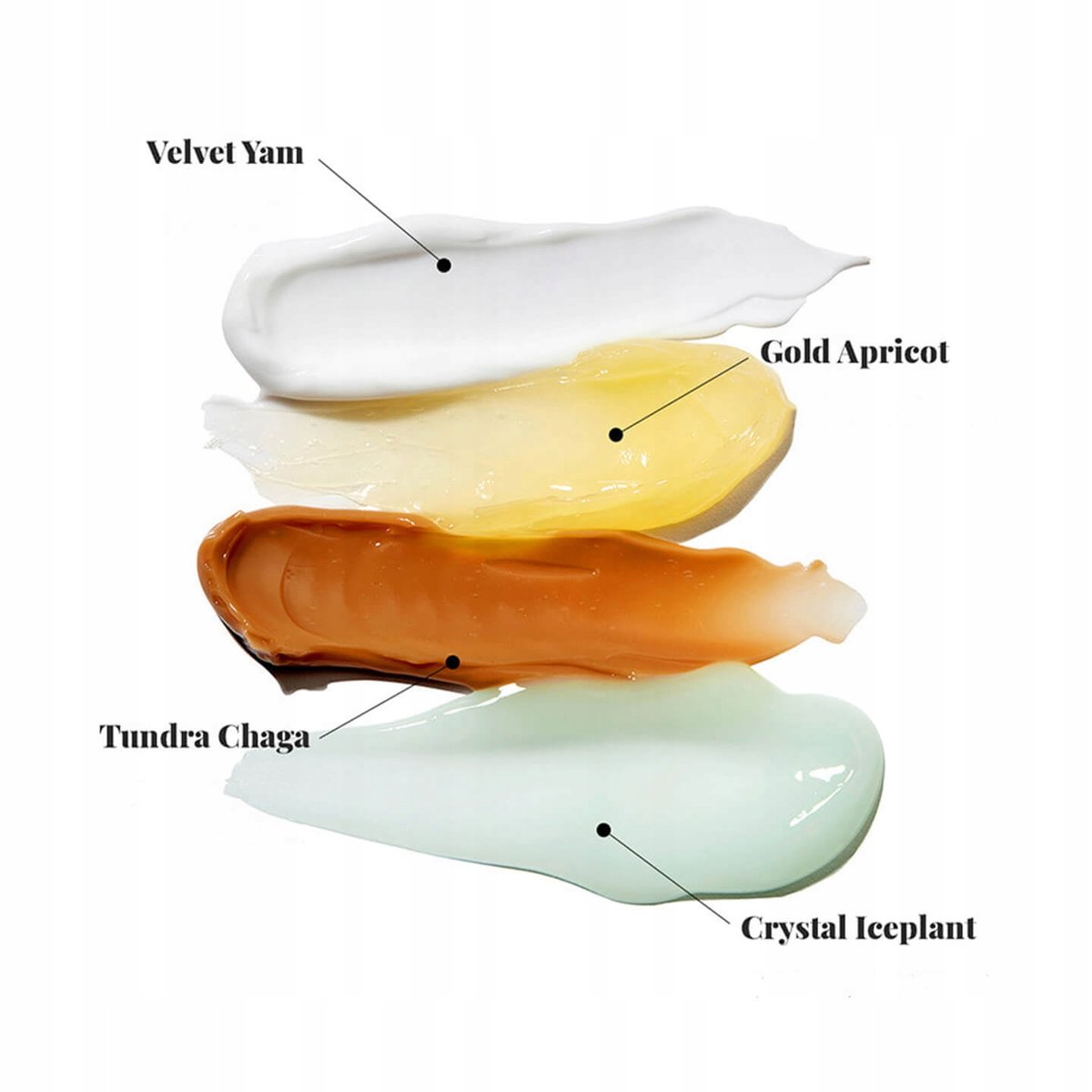 Сыворотка содержит до 68,79% экстракта дикого паха (Wild Yam) - растения, богатые природными муцином и белками, которые поддерживают эпидермальную регенерацию и выработку коллагена. Композиция также включает в себя масло Shea и масло макадамии , которое восстанавливает липидный слой кожи и защищает его от потери влаги. Продукт имеет богатую, но нерастущую консистенцию, которая быстро поглощается, оставляя бархатистую отделку.
