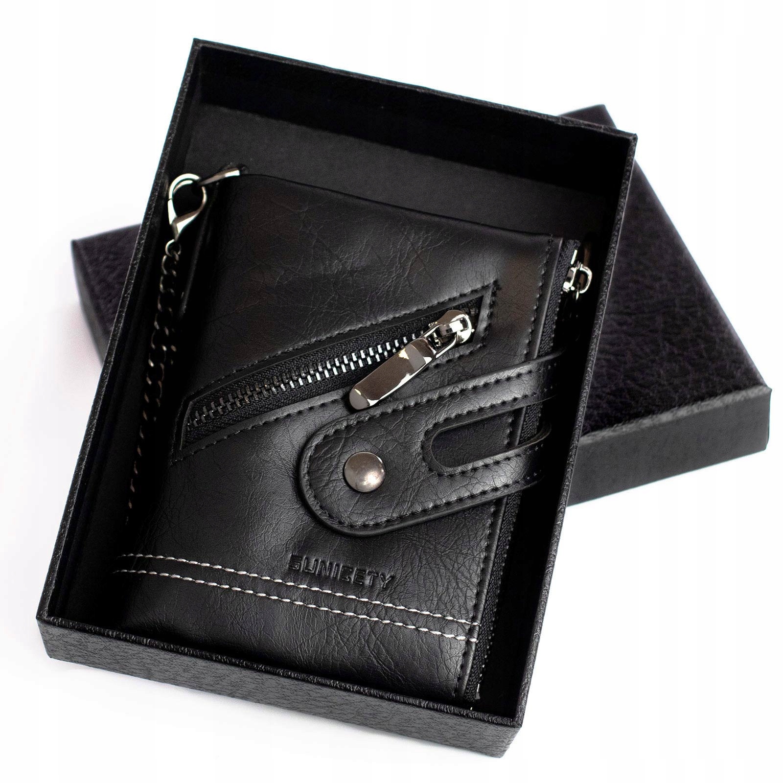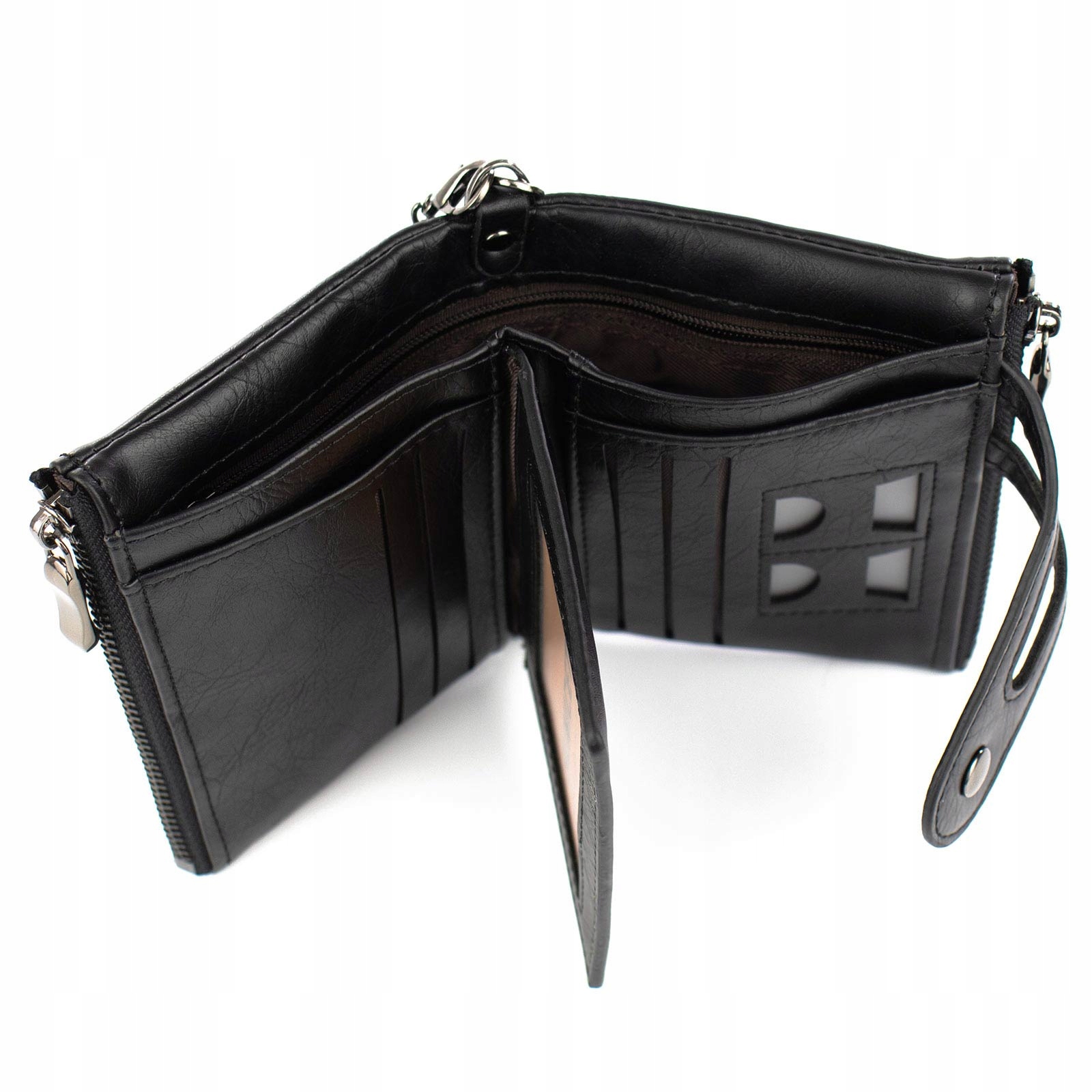 - . и карманы: для банкнот, монет, банковские карты, фото, документы (включая сертификат регистрации), кошелек, оснащенный системой RFID Stop RFID, которая обеспечивает карту в портфеле до кражи средств со счета, которая может быть прикреплена к брюкам