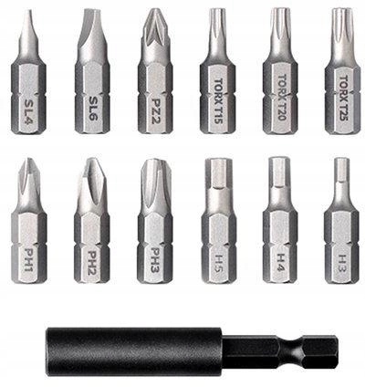 - 12 Высококачественные стальные биты S2 с расширением для большей точности