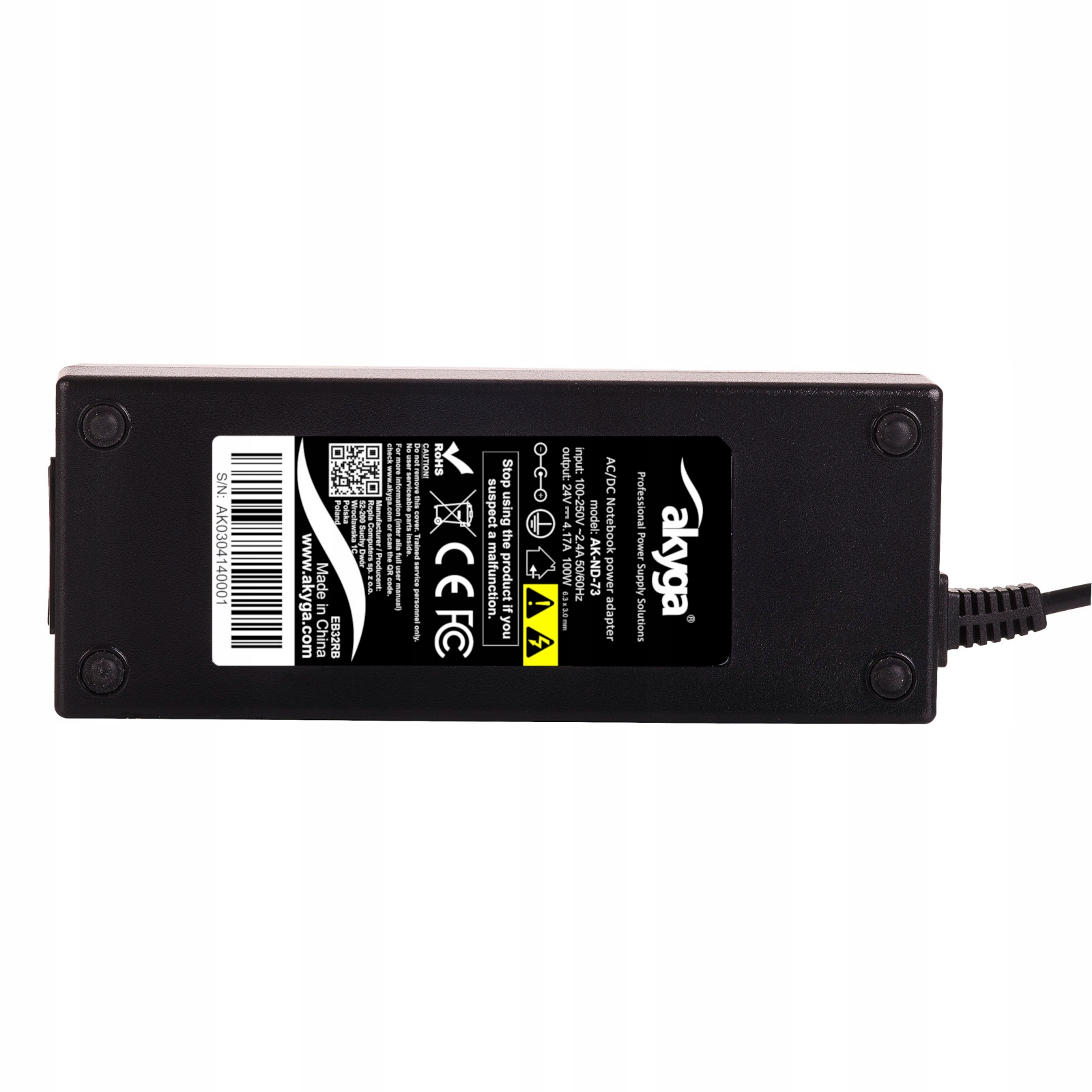 Адаптер переменного тока Akyga® AK-ND-73 — надежный источник питания, предназначенный для принтеров Zebra. Изделие совместимо с устройствами с питанием от сети 24 В/4,17 А и разъемом 6,3 x 3,0 мм. Более того, адаптер имеет продуманную конструкцию. Длинный кабель 1,2 м и угловая вилка обеспечивают удобство использования. Кроме того, продукт оснащен комплексом мер безопасности (OVP, OCP, OPP, OTP, SCP). Это гарантирует безопасную и стабильную работу питаемых устройств и самого блока питания. Дополнительную безопасность оборудования обеспечивает используемая так называемая технология. плавный пуск, который минимизирует удары, связанные с резким увеличением тока при подключении устройства.
