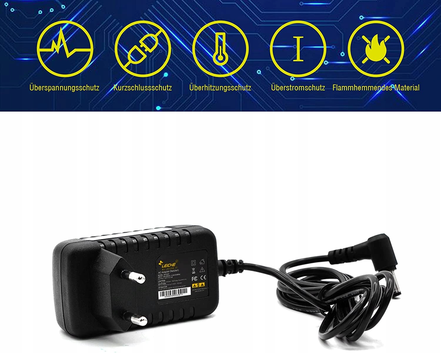 УНИВЕРСАЛЬНЫЙ БЛОК ПИТАНИЯ LEICKE - 9В 2А - 18ВТ - ВИЛКА 5,5/2,5 ММ