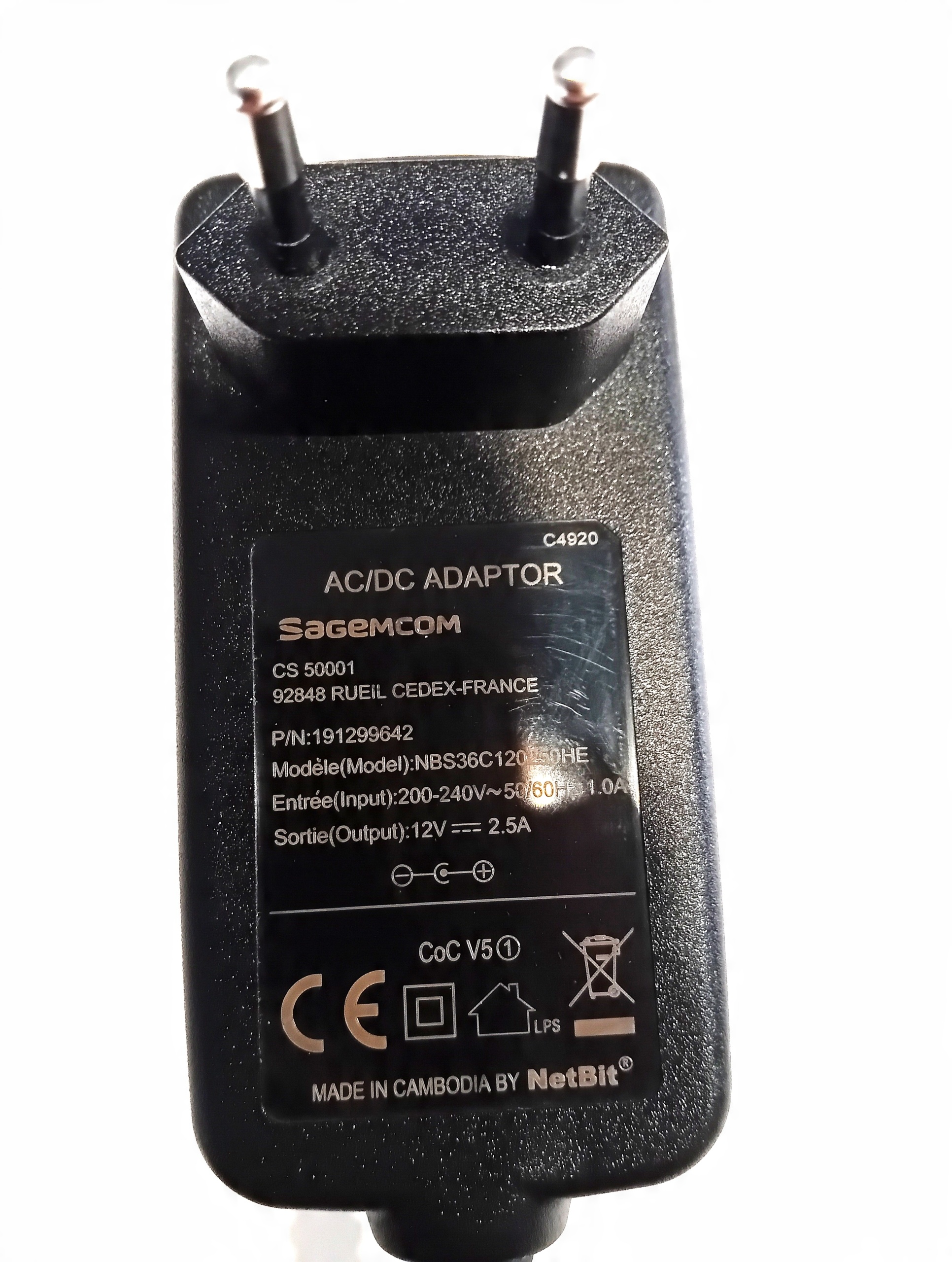 Блок живлення Sagemcom 12V 2.5A Модель: NBS36C120250HE