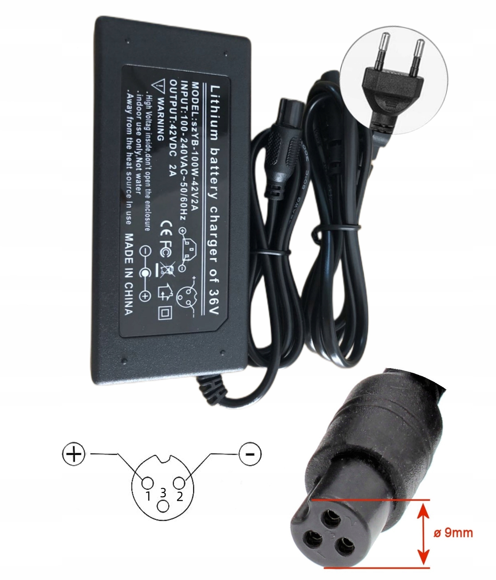 БЛОК ЖИВЛЕННЯ ЗАРЯДНИЙ ПРИСТРІЙ ДЛЯ ЕЛЕКТРОСКУТЕРА АДАПТЕР 42V 2A 3PIN 9MM