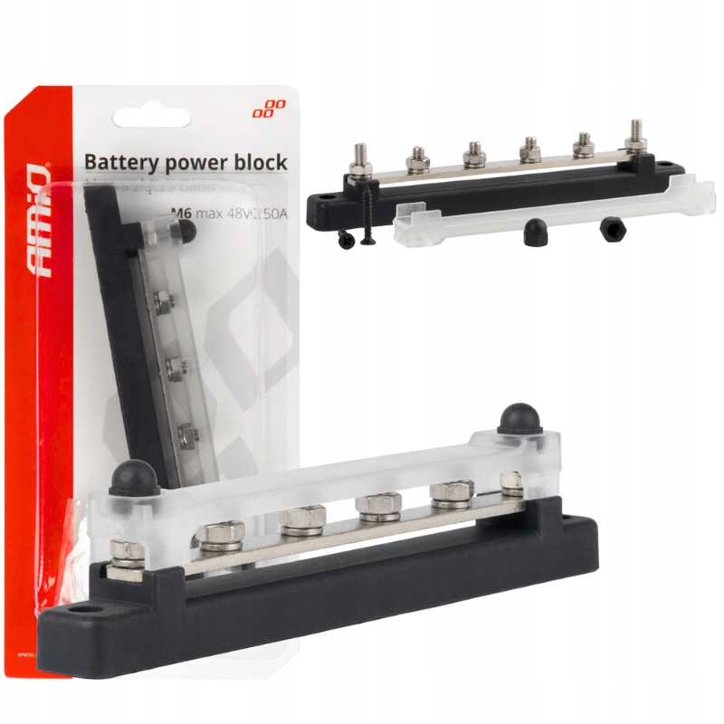 Blok rozdzielczy masy plusa bus bar M6 12V - 48V 150A AMIO-03808