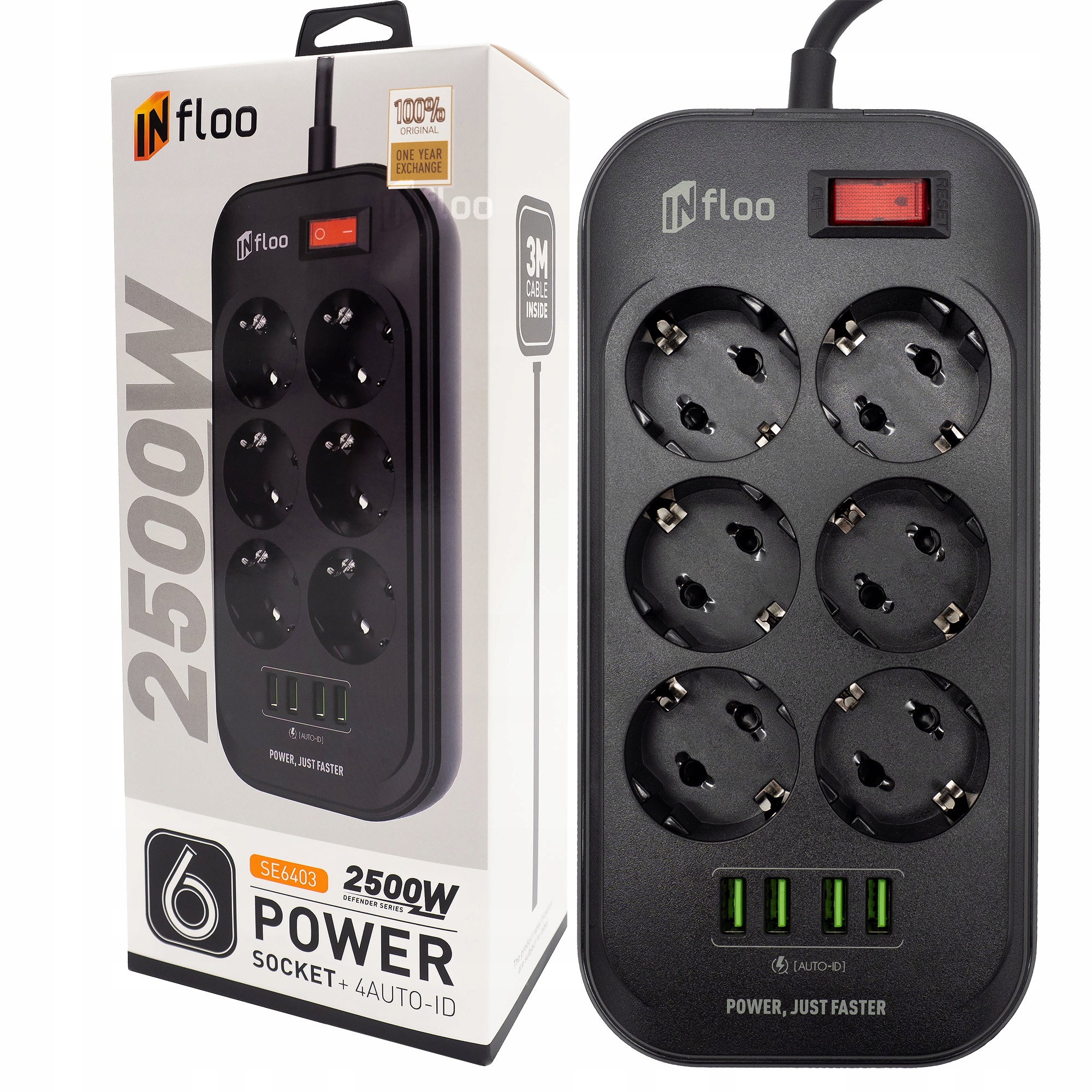 РАСПРЕДЕЛИТЕЛЬНЫЙ БЛОК ПИТАНИЯ УДЛИНИТЕЛЬ 3м 6 РОЗЕТОК + 4xUSB