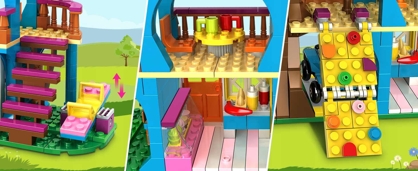 - ❤️Дети могут проектировать и строить свои собственные фантастические домики на деревьях, используя самых разных персонажей.
