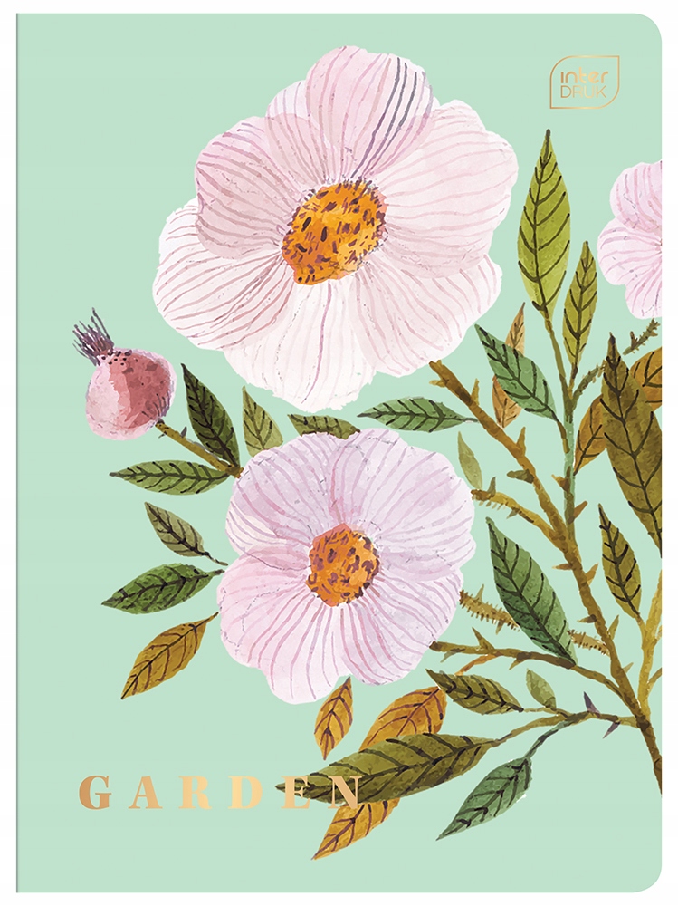 Блокнот А5-60 СЕТКА - ИНТЕРПРИНТ - САД - ЗЕЛЕНЫЙ фон + шиповник