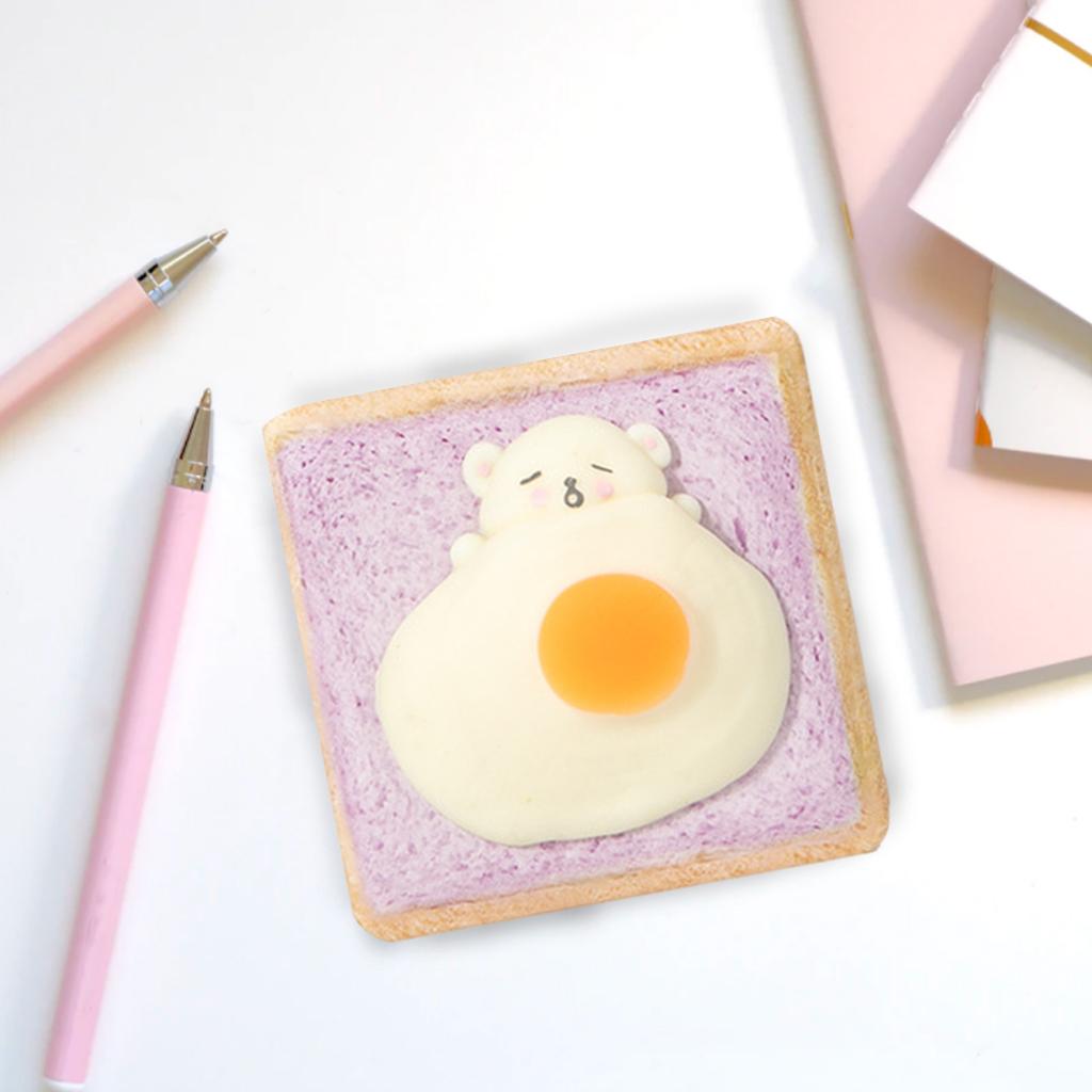 Блокнот із симпатичним м’яким ведмедиком, омлетом, скибочками хліба, з ручкою, барвистий фіолетовий