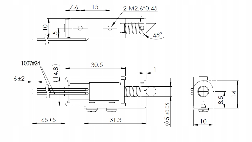 Соленоид блокировки хода замка 3 мм 24В постоянного тока