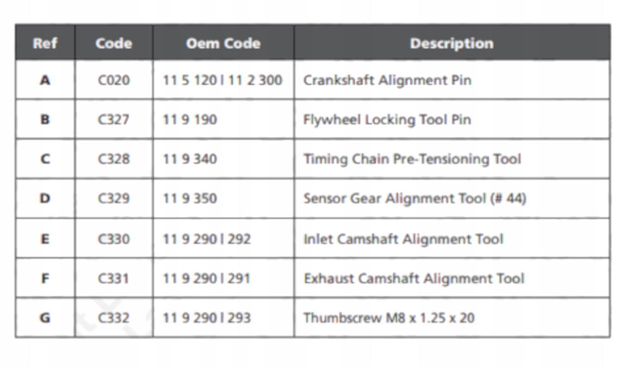 Набор инструментов двигателя - BMW 1.6/1.8/2.0