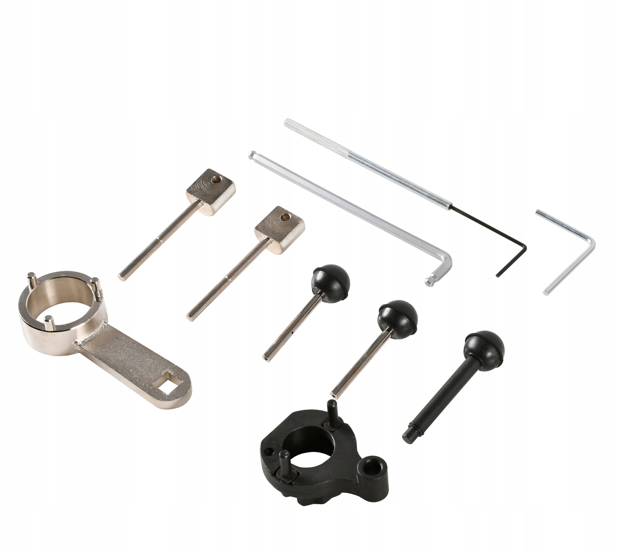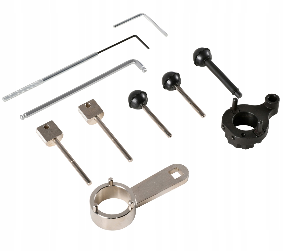 Комплект предназначен для фиксации коленчатого вала, шкива распределительного вала и топливного насоса в удобном для демонтажа и замены ремня или распределительного вала положении.