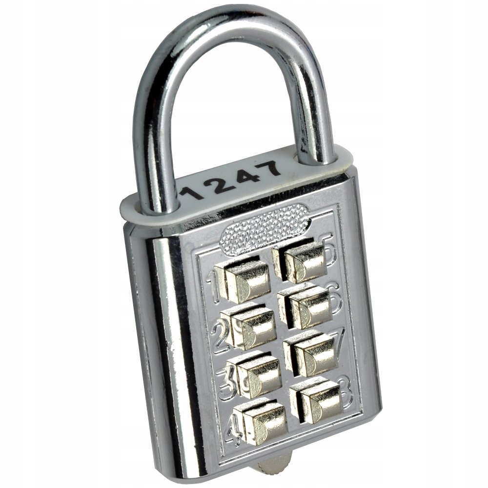 8-кнопочный навесной замок с 4-значным неизменяемым индивидуальным кодом (устанавливается производителем), написанным на прикрепленной бирке