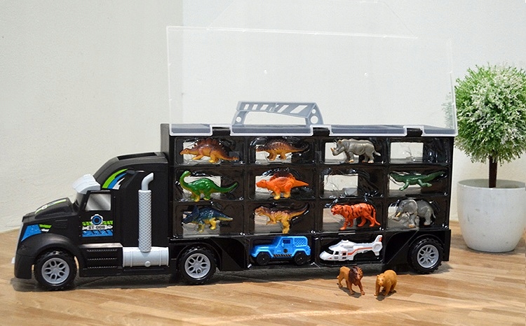Все сделано из качественного пластика. Дверца чемодана прозрачная, поэтому вы можете любоваться своей коллекцией динозавров.