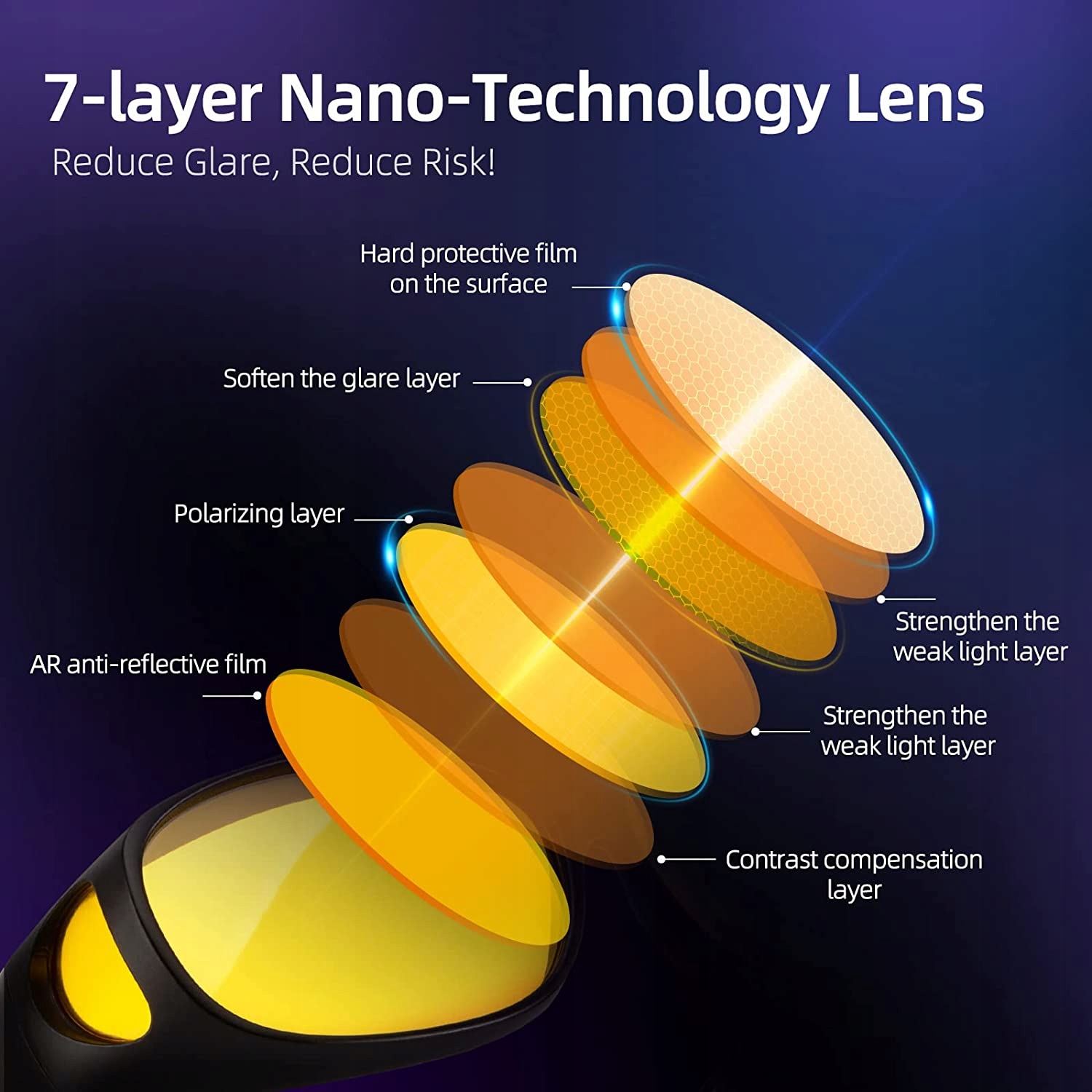 - Поляризационные линзы Bloomoak TAC могут уменьшить блики, добавить контрастности вашему зрению и повысить четкость зрения ночью, в сумерках или в дождливый день. Очки ночного видения сбалансируют поляризацию и зрение, что позволит уменьшить блики от фар и повысить яркость.