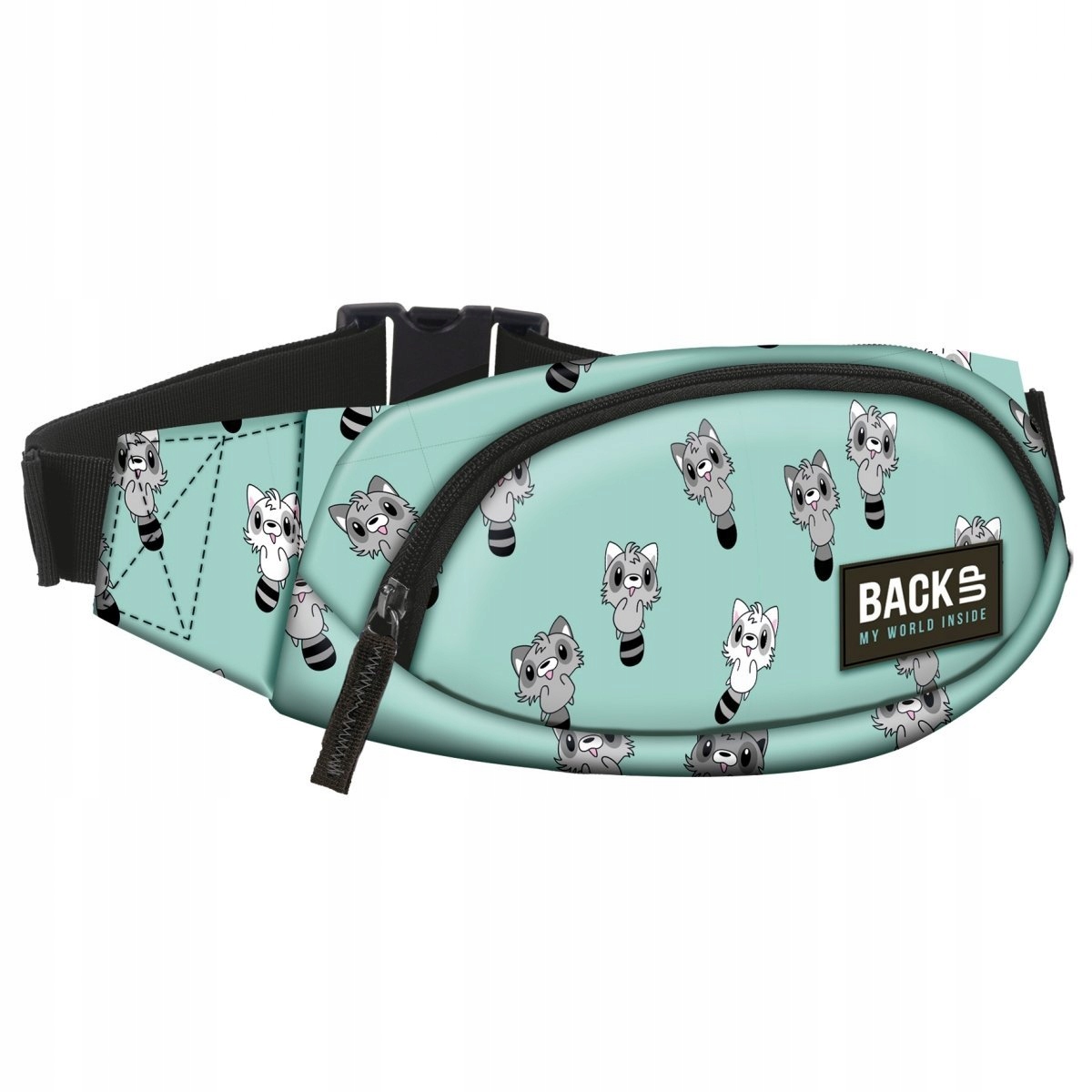 Вместительная и функциональная поясная сумка. Идеально подходит для прогулок или других летних развлечений. Сумка незаменима для тех, кто ценит комфорт и любит иметь так называемые «свободные руки». Он отличается очень тщательной работой и интересным узором с мотивом енота. Сумка изготовлена из прочного и водонепроницаемого материала. Основное отделениеи один надежный задний карман удачно поместят телефон, ключи, кошелек, салфетки и другие мелкие предметы. Большая пряжка очень удобна в использовании. Изделие сочетается с рюкзаками и пеналами той же серии.