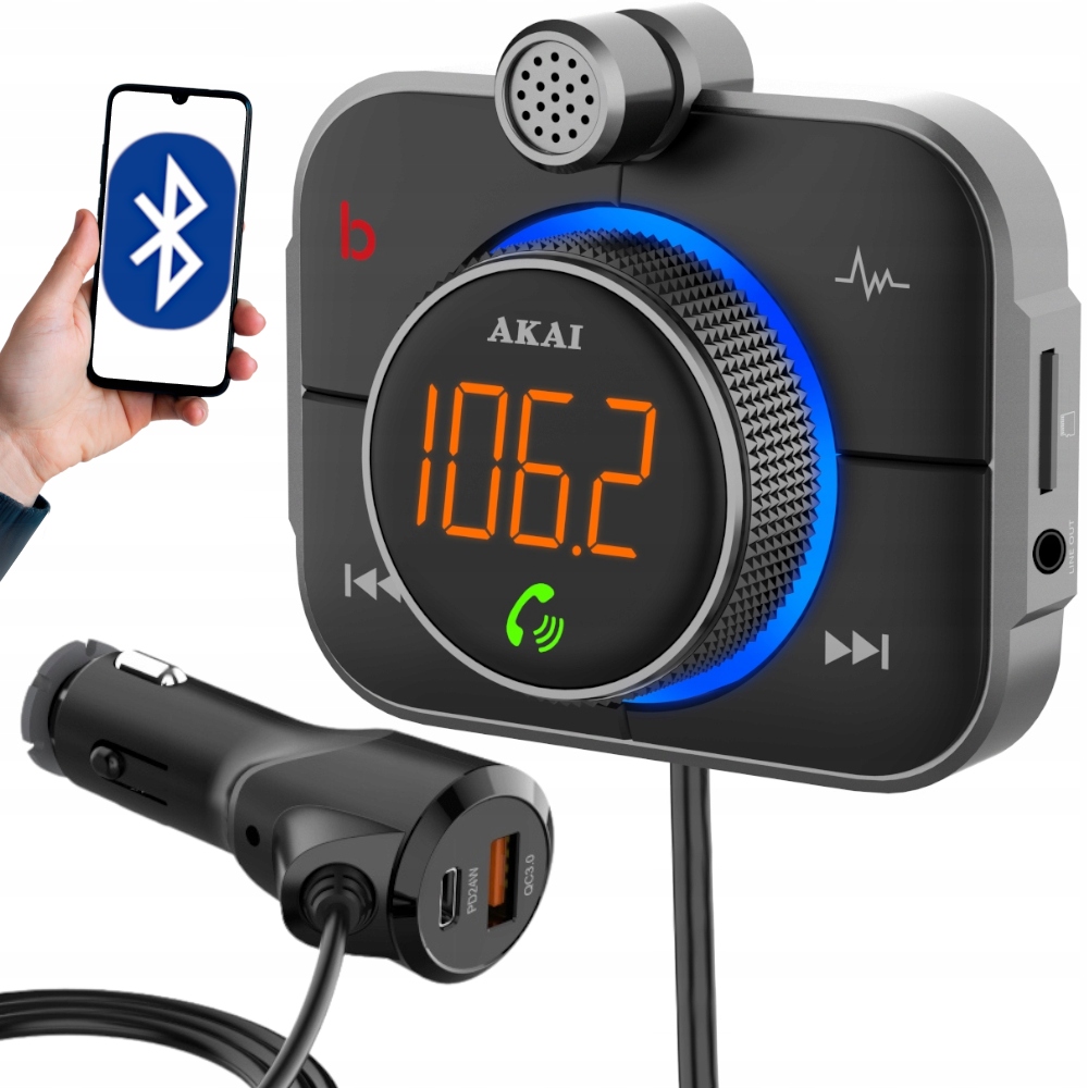 АВТОМОБИЛЬНЫЙ ПЕРЕДАТЧИК BLUETOOTH 5.0 AKAI FMT-95BT QC 3.0 ЗАРЯДКА