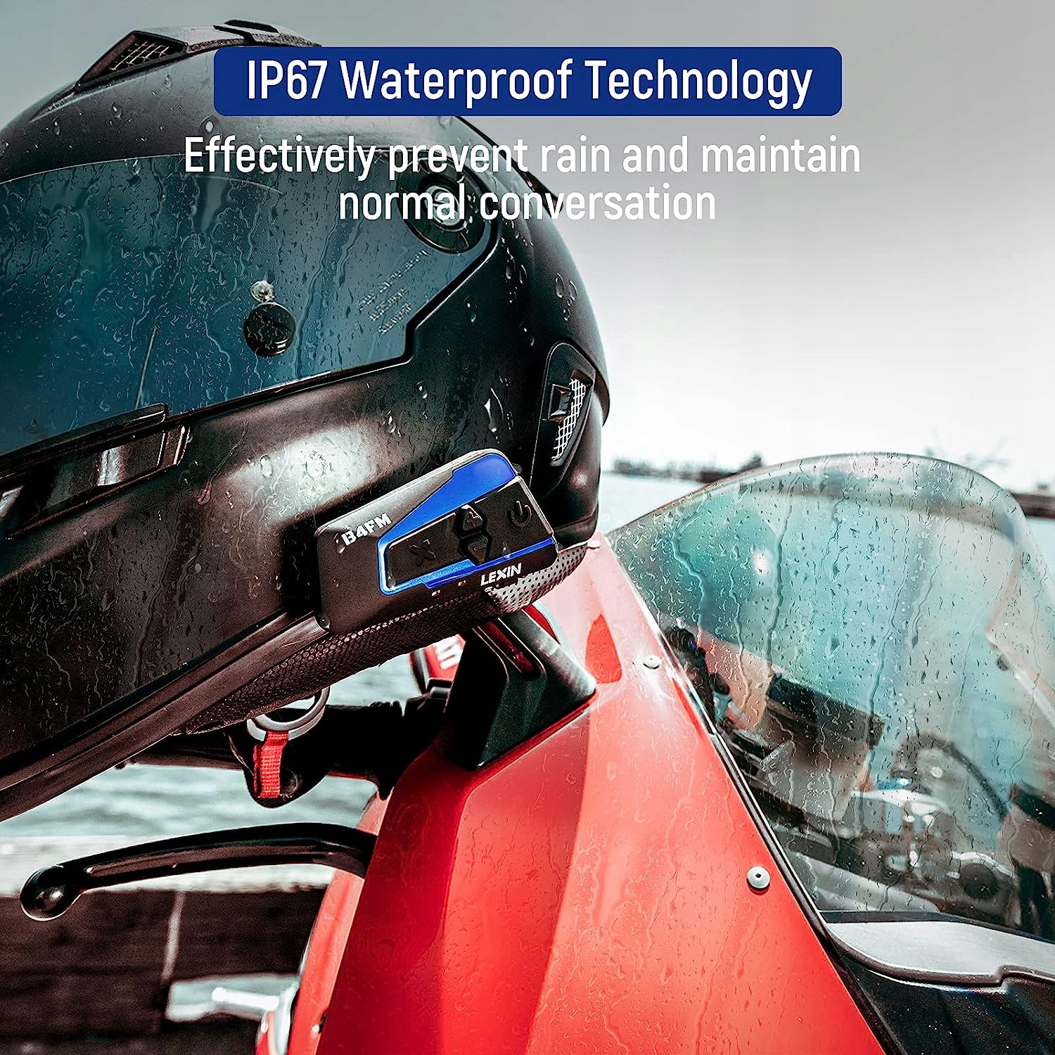 В системах связи гарнитуры LX-B4FM реализована водонепроницаемая технология IP67, которая работает в любых погодных условиях и даже при температуре до -30°C. Он оснащен аккумулятором емкостью 800 мАч, обеспечивающим до 15 часов прослушивания музыки или вызовов по внутренней связи и более недели в режиме ожидания.