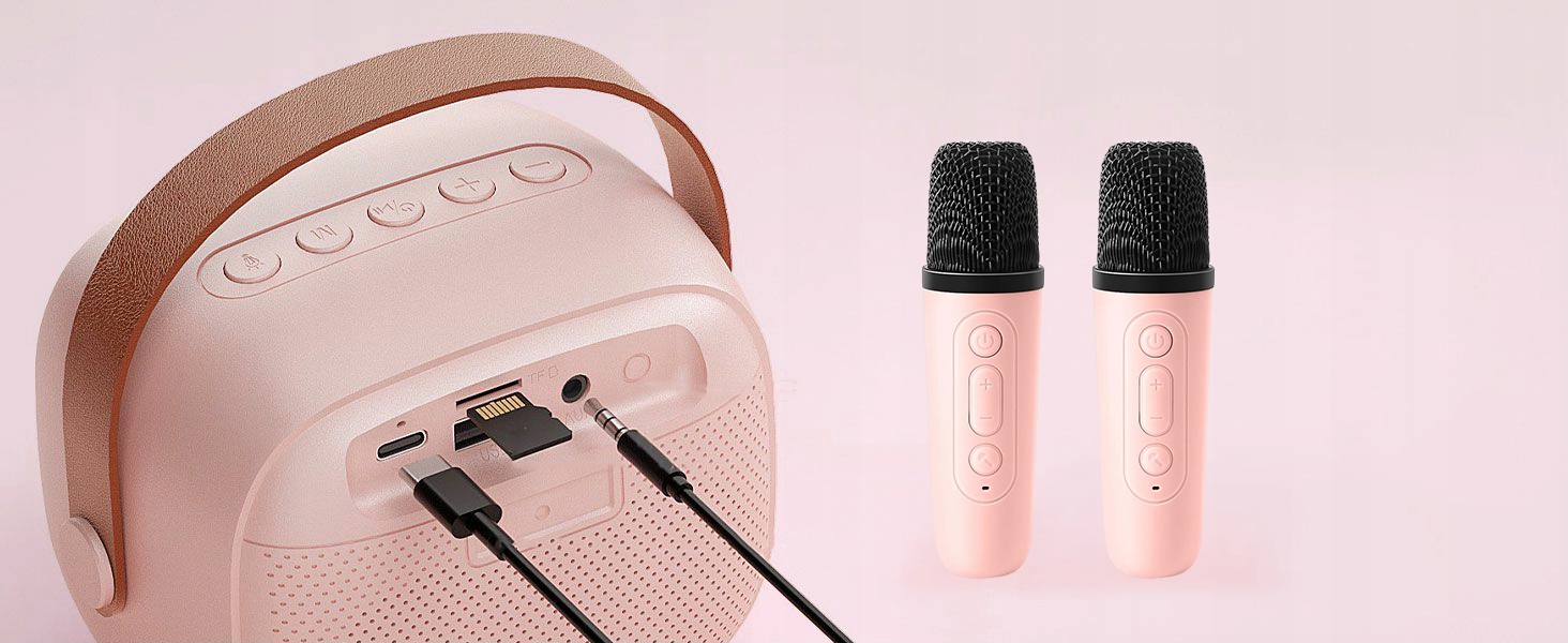 BLUETOOTH КАРАОКА ДЛЯ ДЕТЕЙ С 2 МИКРОФОНАМИ И 6 СВЕТОВЫМИ ЭФФЕКТАМИ