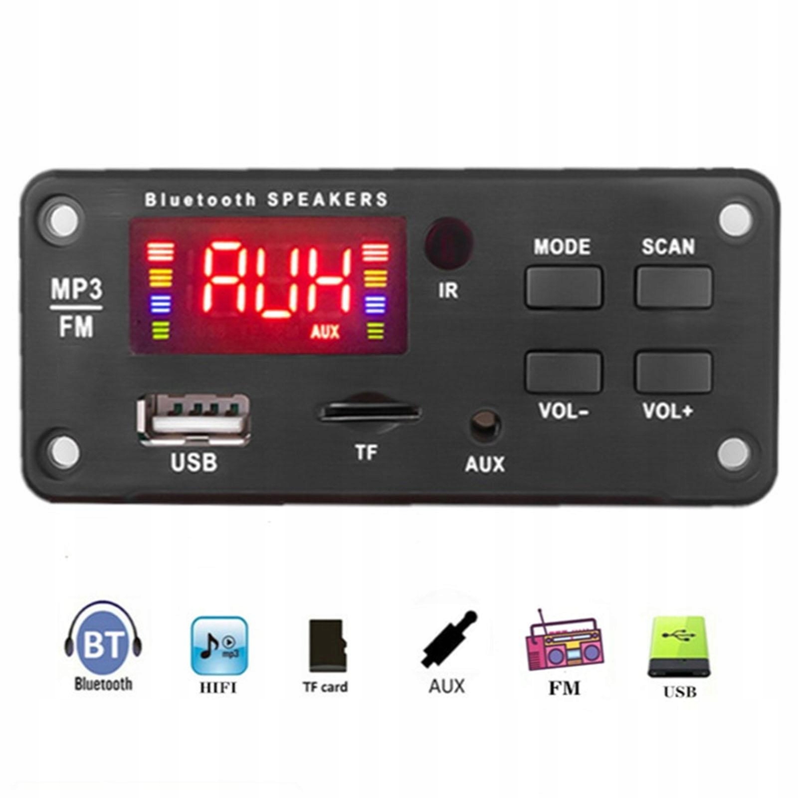 Поддерживает воспроизведение музыки с USB-диска/TF-карты. Поддержка функции отключения памяти. Напряжение источника питания поддерживается в диапазоне от 7 до 18 В постоянного тока.