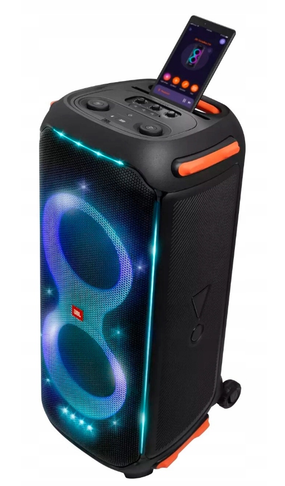 Внезапное изменение стороны партии не вызовет у вас проблемы с ношением докладчика. JBL Partybox 710 имеет большие твердые колеса, позволяющие вам взять динамик, где бы вы ни захотели. Устройство было оснащено удобной ручкой, которая улучшит транспорт.