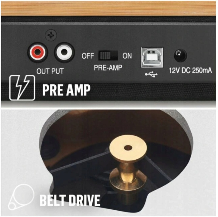 MARLEY Stir it up – это высококачественный проигрыватель с ременным приводом и встроенным предусилителем, обеспечивающим точное воспроизведение каждой записи коллекции. Проигрыватель предлагает две скорости воспроизведения: 33 1/3 и 45 об/мин, а также функцию антискейтинга, т.е. регулировку, позволяющую компенсировать центростремительную силу, вызванную движением вращающейся пластинки.