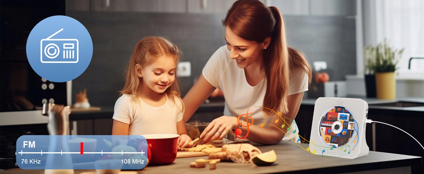 - Проигрыватель компакт-дисков Bluetooth: в этом портативном проигрывателе компакт-дисков используется технология Bluetooth 5.0, которая обеспечивает больший диапазон сигнала, более быстрое соединение и скорость передачи. Встроенные двойные динамики Hi-Fi Bluetooth, которые можно подключать к устройствам с поддержкой Bluetooth, например мобильному телефону или планшету. Работает как проводной динамик.