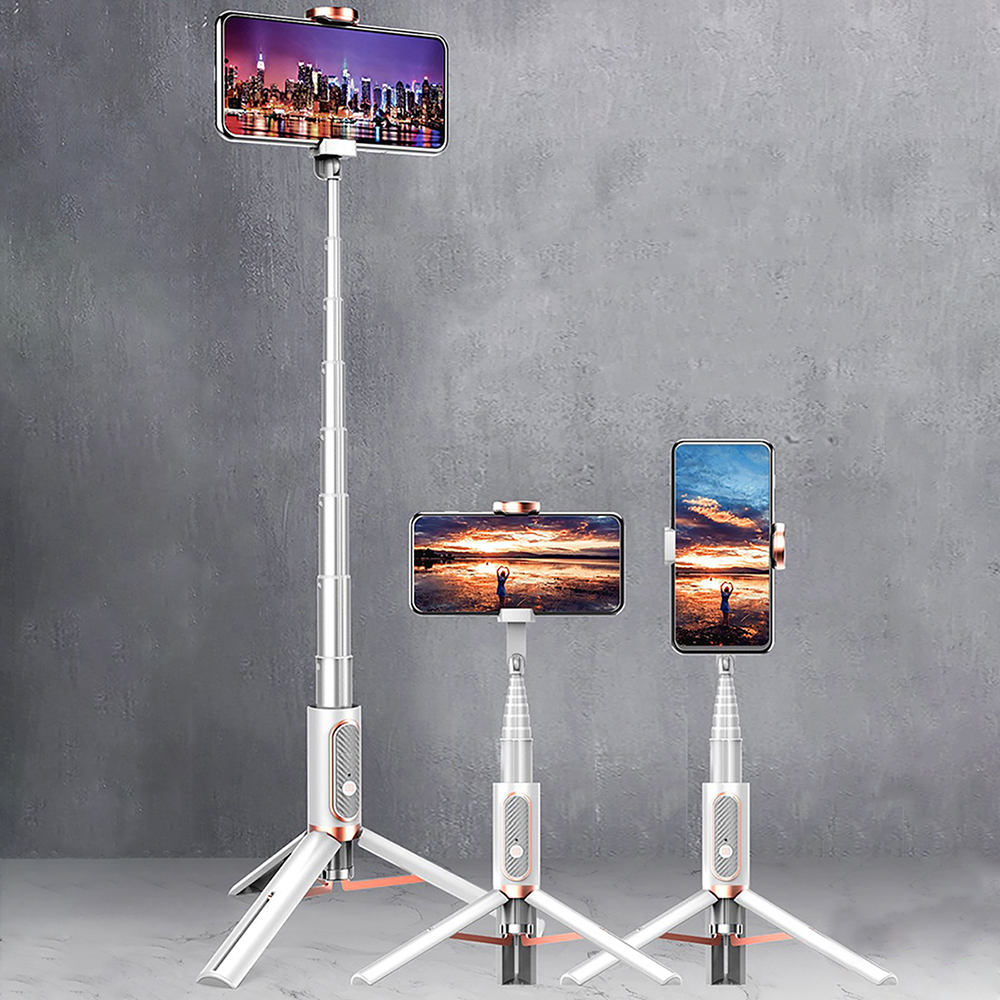 Прочная алюминиевая конструкция обеспечивает надежное позиционирование телефона. Штатив позволяет регулировать высоту, поворачивать смартфон и делать фотографии на расстоянии с помощью пульта дистанционного управления. Устройство оснащено беспроводным пультом дистанционного управления с аккумулятором емкостью 50 мАч, все встроено в ручку.