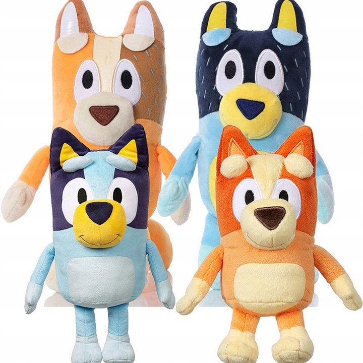 талисманы Bluey, Bingo, Chilli и Bandit изготовлены из мягкого плюшевого и имеют высоту около 28 см. Они очень приятны на ощупь и спроектированы так, чтобы они напоминали персонажей из анимационного сериала.