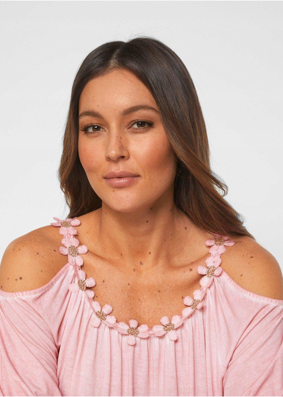 БЛУЗКА РОЖЕВА З КВІТАМИ 1Т4Е17 бпк 40