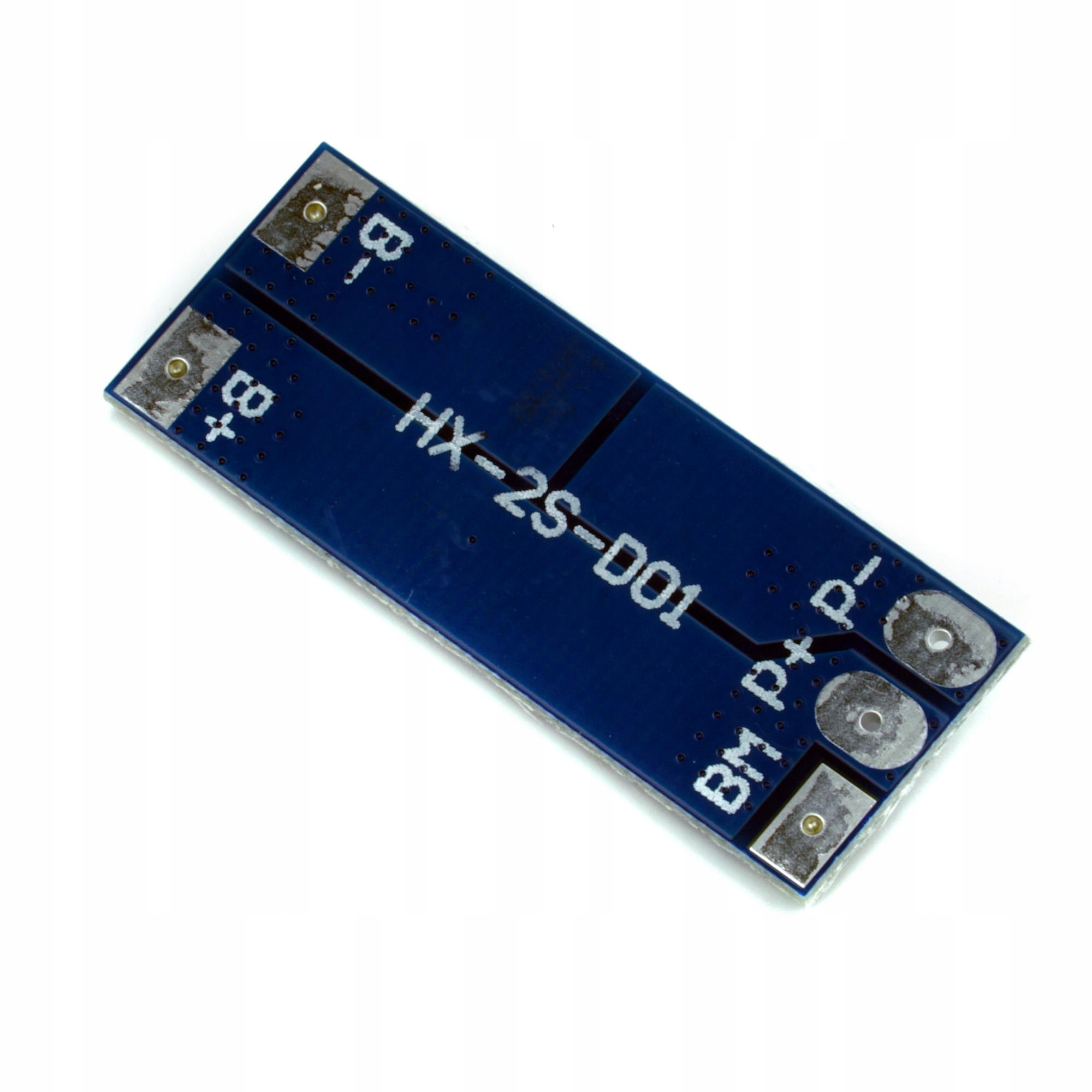 Модуль BMS 2S для управления зарядкой и разрядкой литий-ионных аккумуляторов, выдерживающий ток силой 8А в непрерывном режиме. Это гарантирует, что напряжение элемента не упадет ниже 2,5–3 В и не будет заряжаться выше 4,25–4,35 В. Имеет защиту от короткого замыкания.