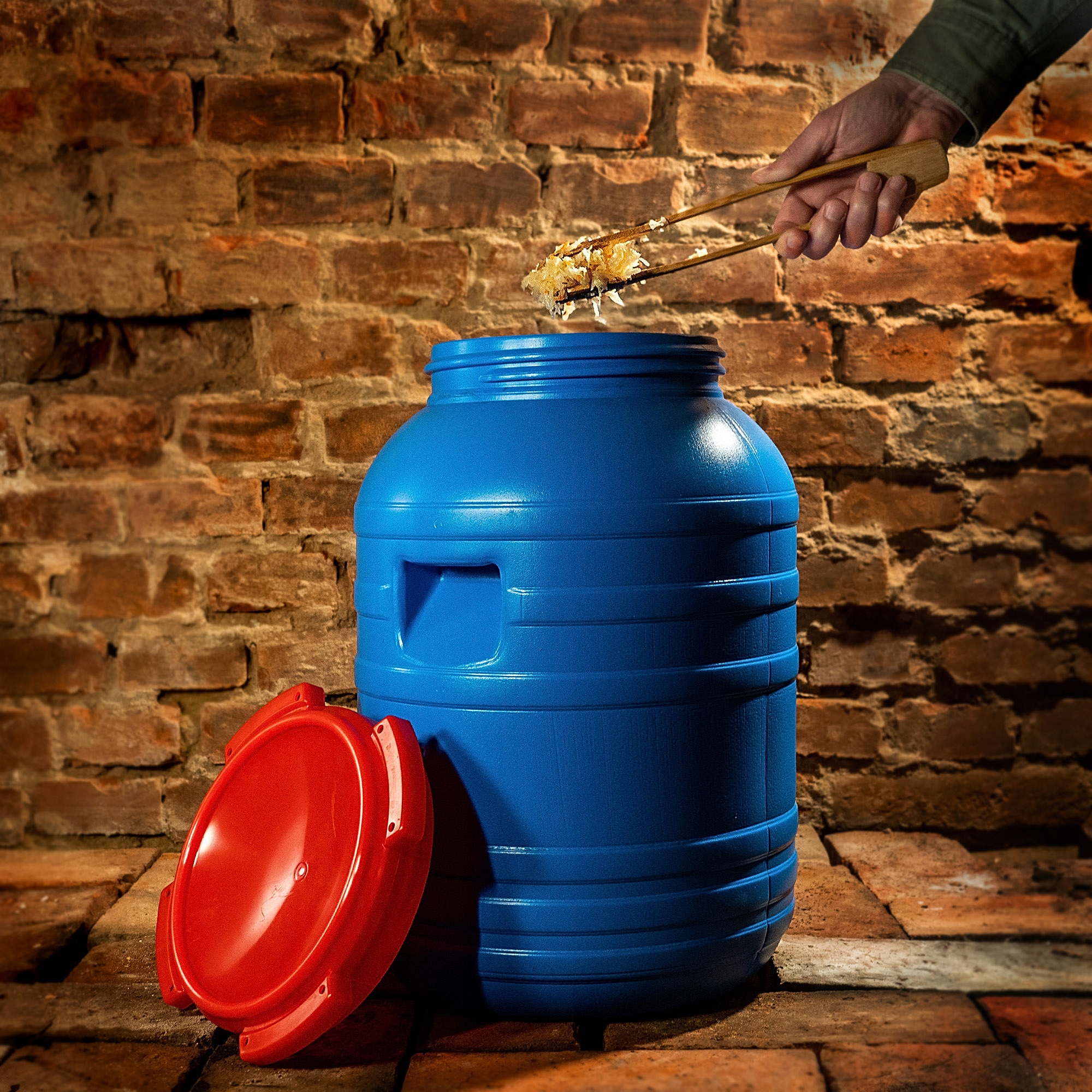 Пищевые продукты, помещенные внутрь, не подвергаются воздействию запаха бочки, поскольку он нейтрален по отношению к пище. Благодаря использованию безопасного материала ПНД, риск попадания искусственных красителей в продукцию отсутствует.