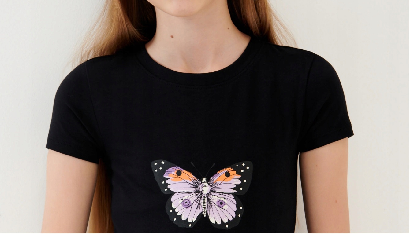Черное хлопковое боди с короткими рукавами-бабочками.