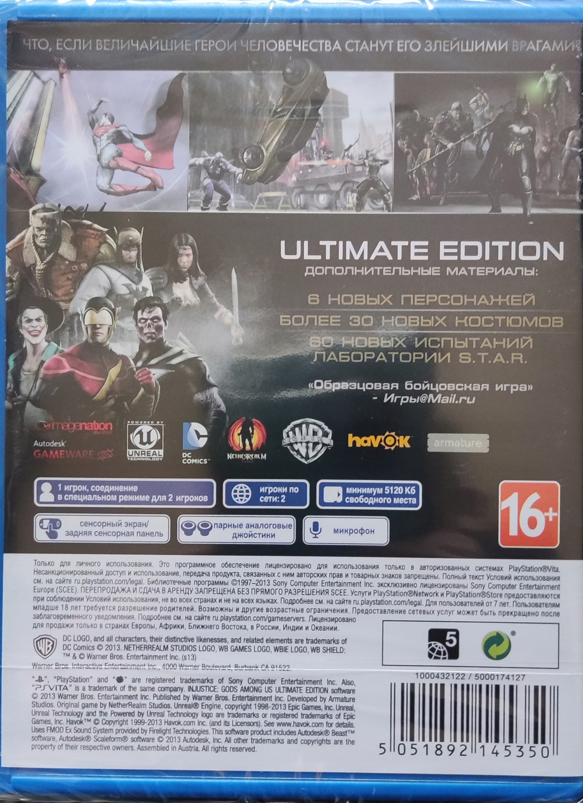 Просматривая «Боги несправедливости среди нас Ultimate Edition PS Vita Psvita Sony в Plock PL», вы можете быть уверены, что данный товар из каталога «Sony PS Vita» будет доставлен из Польши и проверен на целостность. В цене товара, указанной на сайте, учтена доставка из Польши. Внимание!!! Товары для Евросоюза, согласно законодательству стран Евросоюза, могут отличаться упаковкой или наполнением.