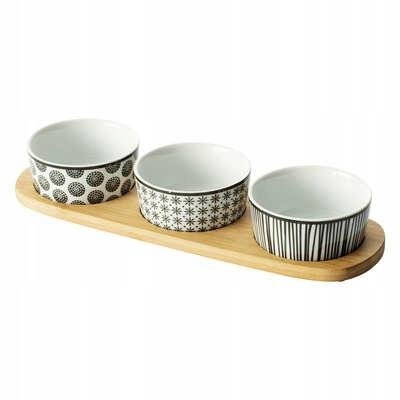 Bohemia Starter Kit является идеальным решением для тех, кто ценит элегантность и функциональность при подаче закусок . Поднос с круглыми, стабильными полостями , состоящим из мисок и бамбуковых прокладков , позволяет удобную и эстетическую порцию деликатесов . Благодаря возможности промывки в посудомоечной машине и использования в микроволновой печи, это практическое и долговечное дополнение к кухне.