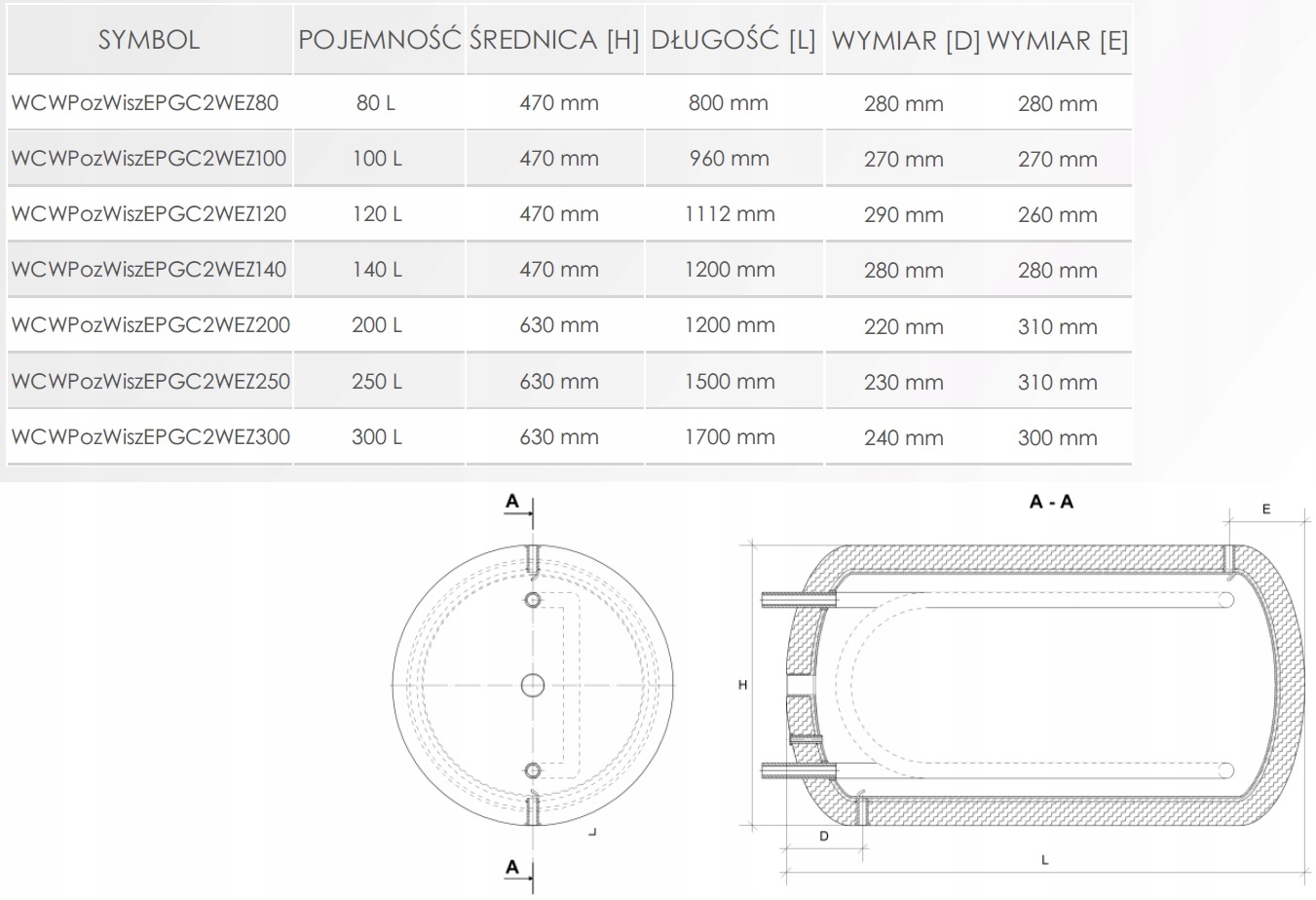 Емкость баков составляет от 80 до 300 литров