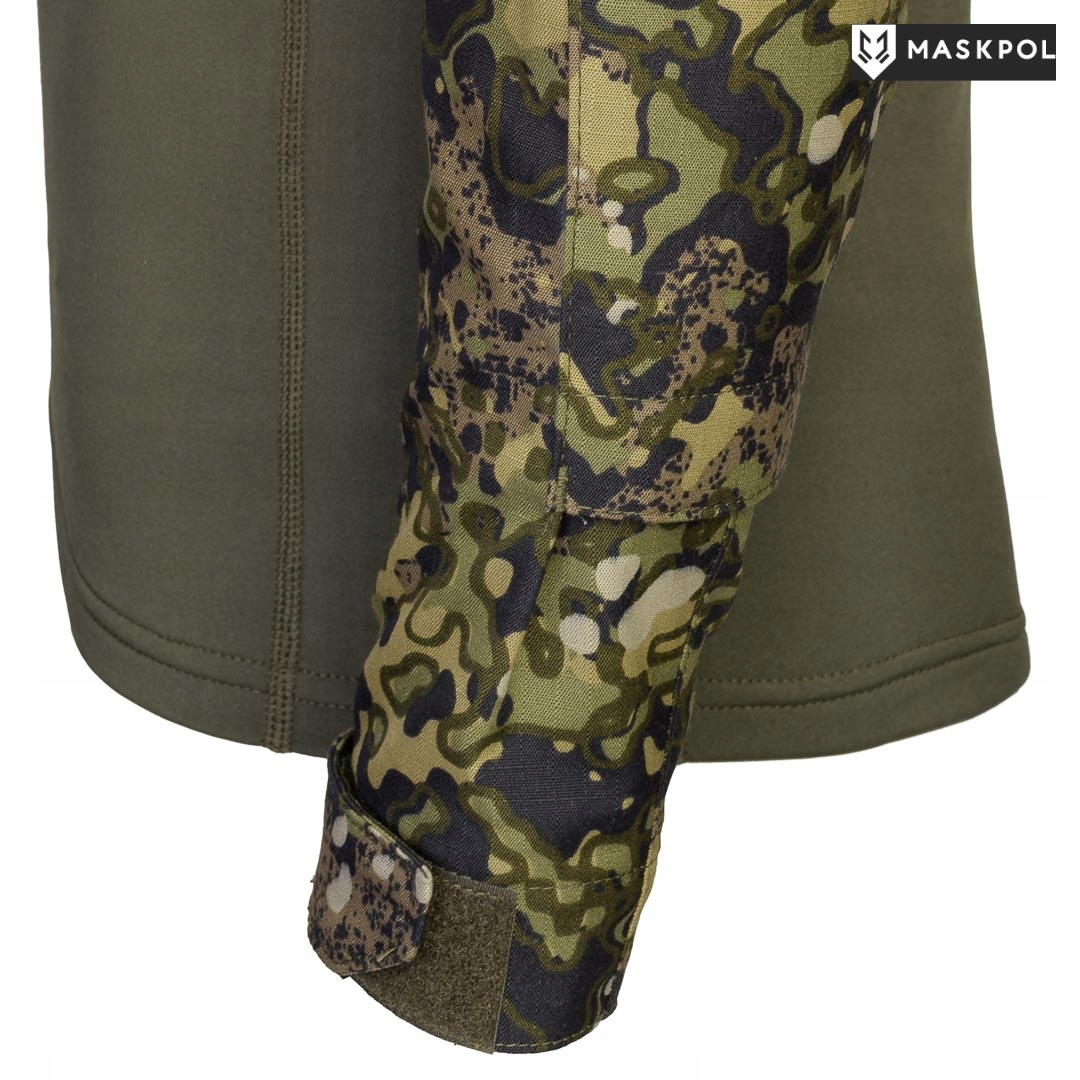 Рукава, плечи и воротник-стойка изготовлены из оригинального материала Rip-Stop US-23, используемого в Войске Польском для пошива обмундирования. Ткань УС-23 (50% хлопок, 50% полиэстер) – летний вариант, легкий и воздушный. Натуральный хлопок хорошо дышит и впитывает влагу от тела. Полиэстер укрепляет материал, обеспечивает его быстрое высыхание и устойчивость к выцветанию цвета. Rip-Stop — это технология, которая укрепляет материал за счет добавления в переплетение ткани дополнительных, более прочных волокон — характерной сетки.