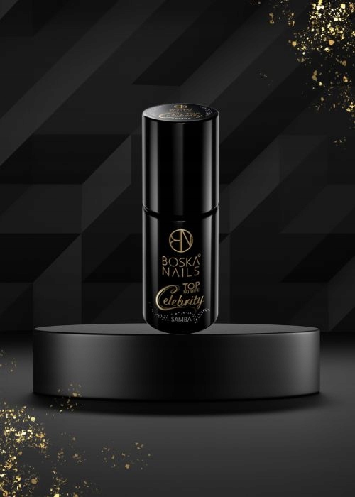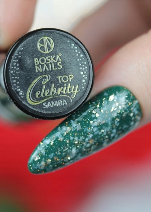 Откройте для себя магию великолепия и цвета от Top Celebrity Samba! Этот уникальный верхний слой сочетает в себе деликатную золотую и белую фольгу с тонким блеском , который мерцает с многоэтажными отражениями.