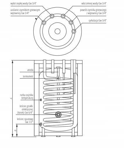 BOJLER OGRZEWACZ WODY 140L 1 WĘŻOWNICA STOJĄCY PRZYŁĄCZA OD GÓRY ANODA