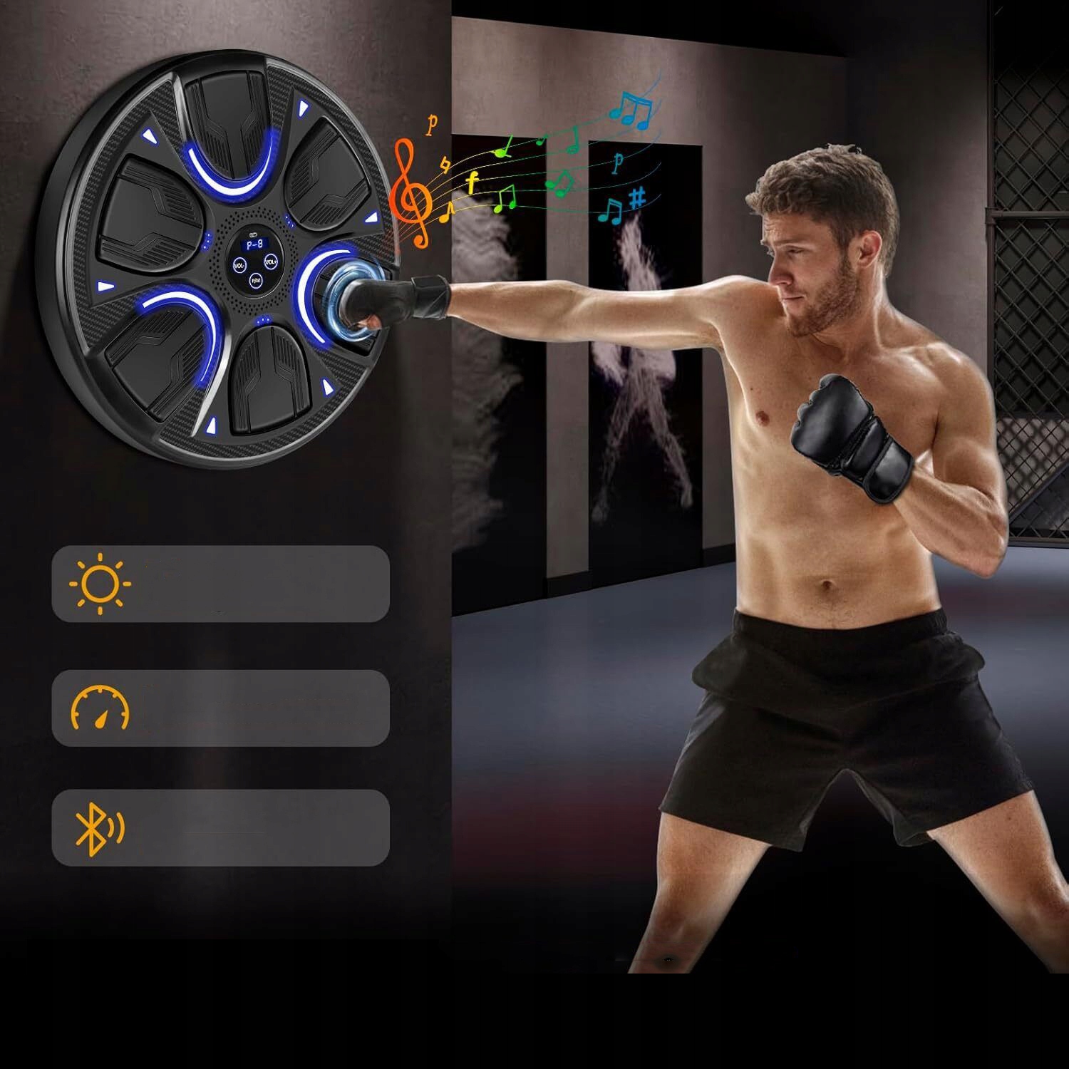 🥊【 Интеллектуальная музыкальная боксерская машина. Музыкальная боксерская машина оснащена улучшенными динамиками и просторным звуком, с ритмическими эффектами освещения. Легко синхронизировать телефон через Bluetooth, чтобы воспроизвести ваши любимые песни и наслаждаться привыкающим пространственным звуком стерео. Войдите в ритм и мелодию во время упражнений! Идеально подходит для энтузиастов фитнеса, которые хотят улучшить свои тренировки.