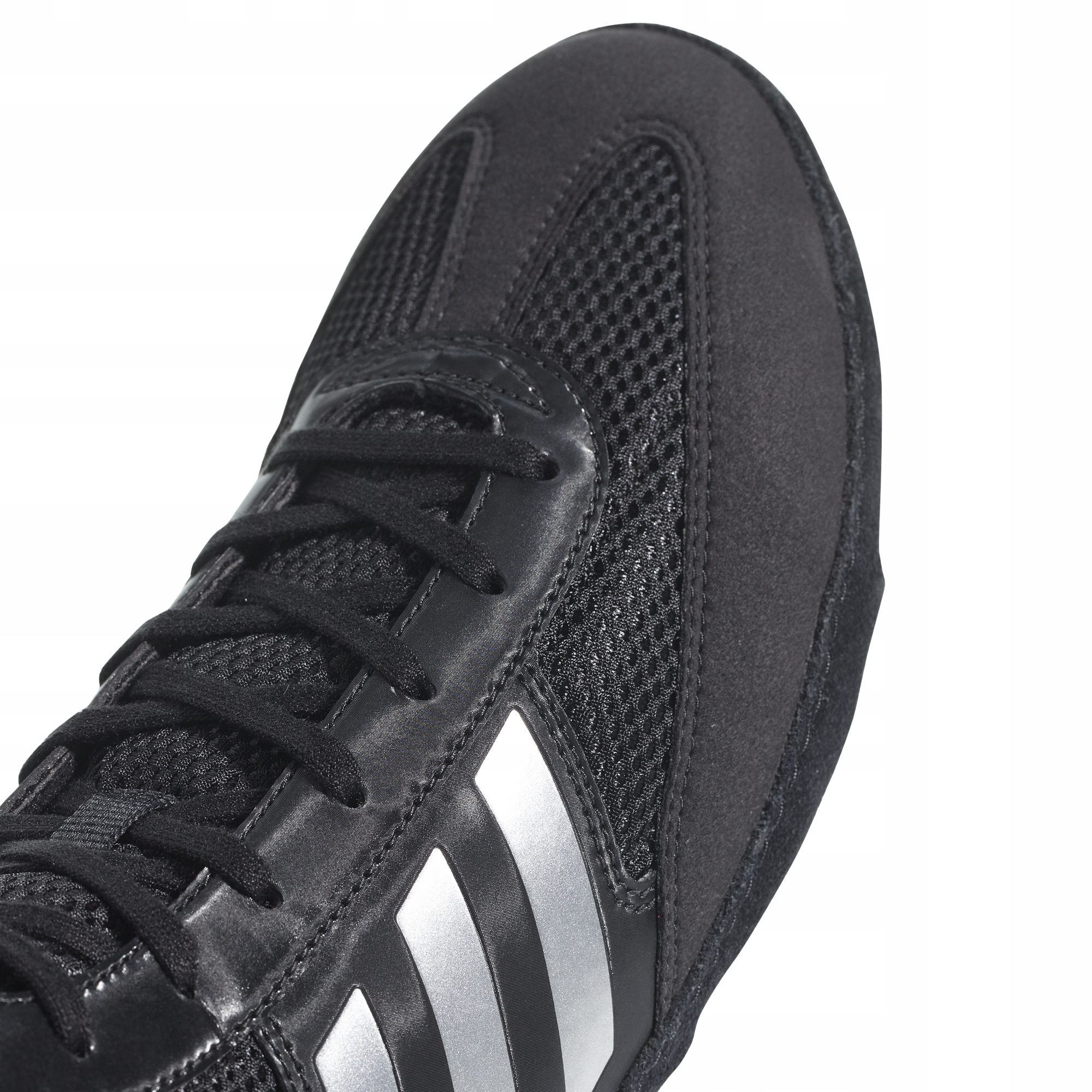 Преимуществом обуви COMBAT SPEED является ее комфорт, легкость и долговечность даже при интенсивном использовании. Сочетание замши и дышащей полиэфирной сетки гарантирует, что наши ноги будут хорошо вентилироваться, и нам не придется беспокоиться об отсутствии комфорта во время упражнений или схваток. Подошва обуви соответственно гибкая и гибкая. Он отделан замшей Masch и закреплен внизу резиной adiWear, что гарантирует устойчивость и не пачкает паркет. Обувь COMBAT SPEED также оснащена специальной липучкой, которая предотвращает расстегивание шнурков.