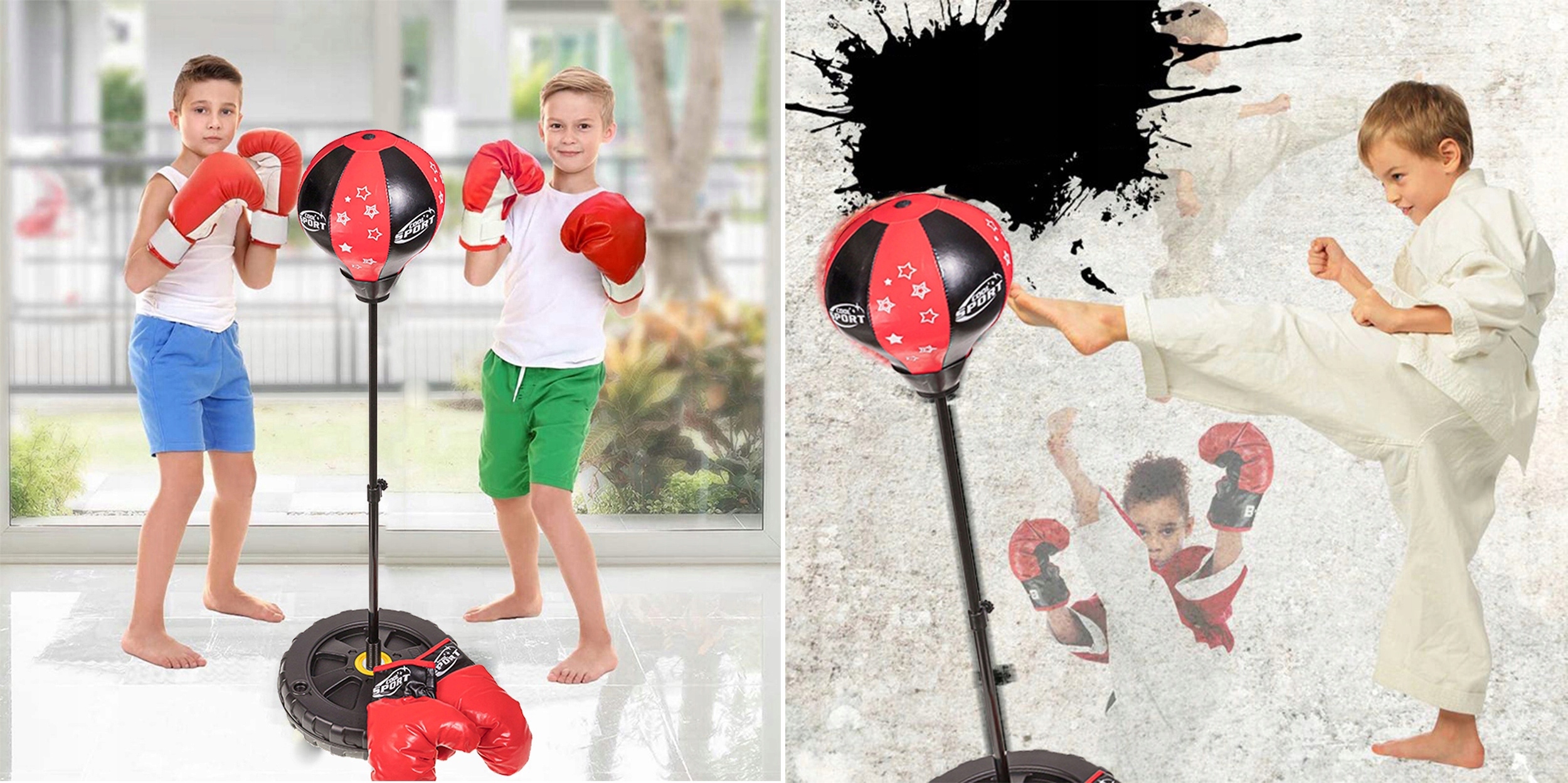 С мячом для БОКСА с подставкой и перчатками вы получите все необходимое для поощрения активной, ударной игры в помещении или на улице.